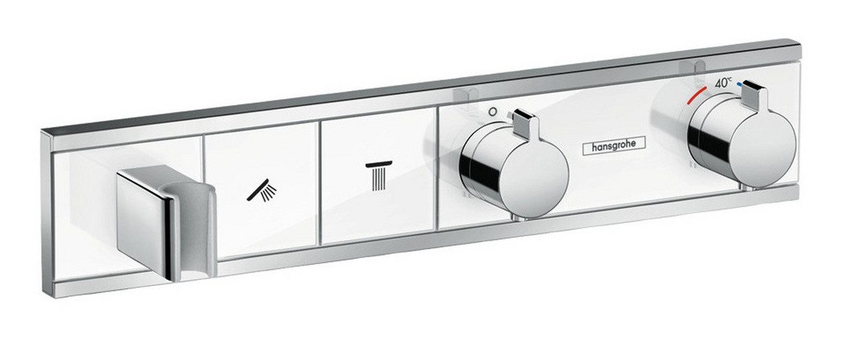 Hansgrohe RainSelect Thermostat für 2 Verbraucher mit integriertem Brausehalter Unterputz - Weiß / Chrom