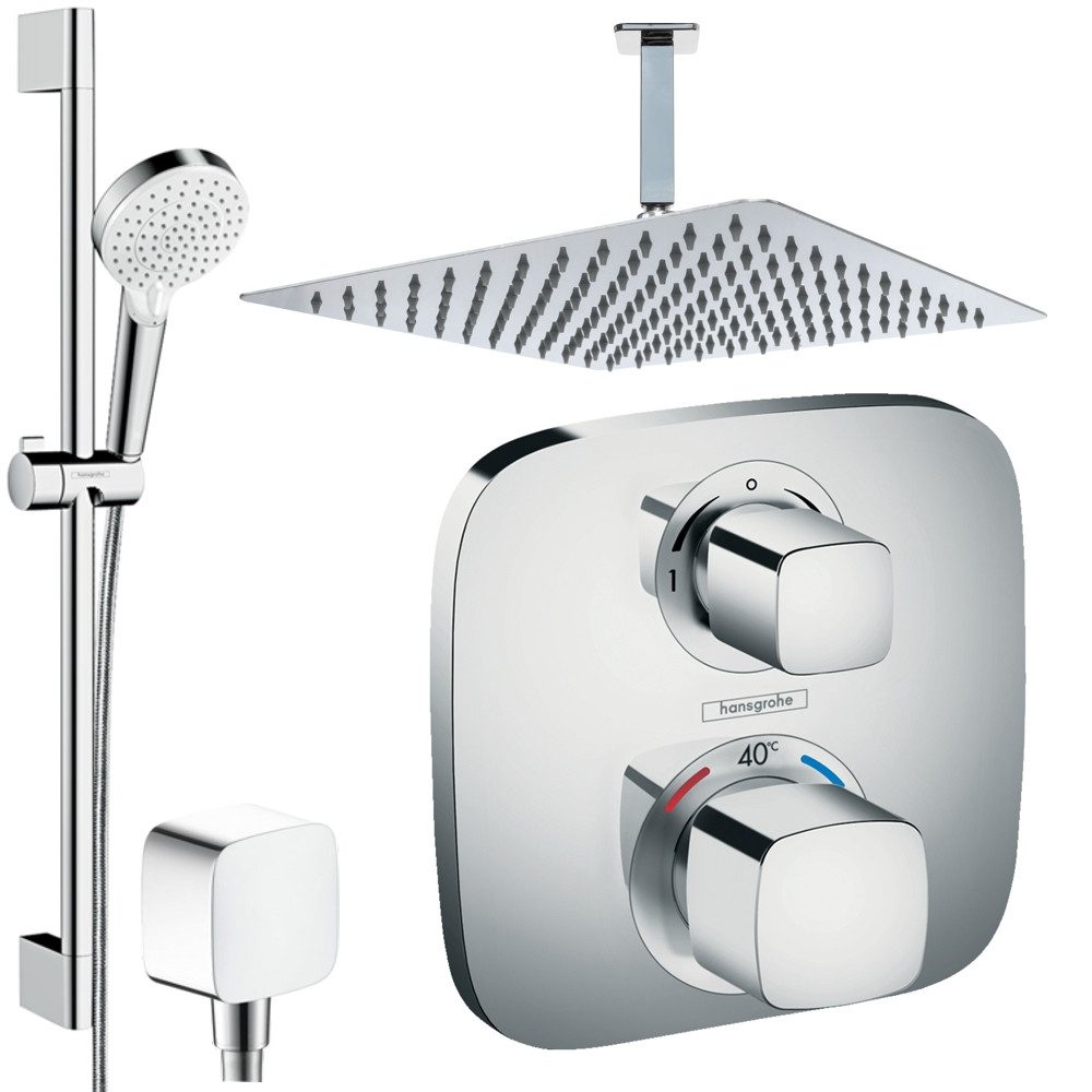 Lieferumfang | [OPTIONAL] Hansgrohe iBox 1 Grundkörper universal, 01800180 Hansgrohe Ecostat E Thermostat Unterputz für 2 Verbraucher, 15708000 Hansgrohe Crometta Brauseset Vario mit Brausestange 65 cm, 26532400 Hansgrohe Fixfit Schlauchanschluss, 26457000 Jowi Kopfbrause, 250x250 oder 300x300mm oder 360x360mm Jowi Deckenanschluss, Gesamtlänge: 155mm |