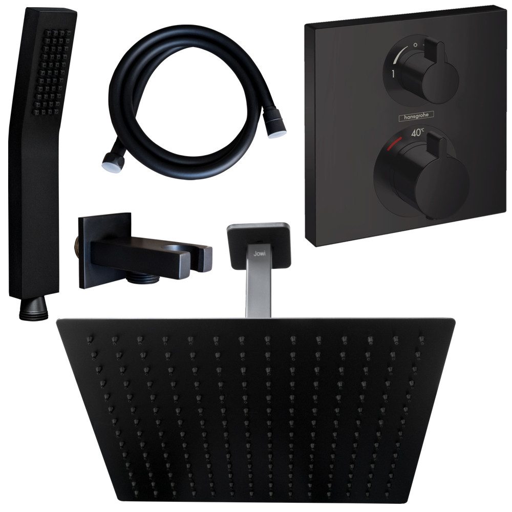 Lieferumfang | [OPTIONAL] Hansgrohe iBox 1 Grundkörper universal, 01800180 Hansgrohe Ecostat Square Thermostat Unterputz für 2 Verbraucher, 15714670 Jowi Handbrause, Messing Mattschwarz Jowi Wandanschlussbogen mit Wandbrausehalter, Messing Mattschwarz Jowi Brauseschlauch 1500mm, Mattschwarz Jowi Kopfbrause, 300x300mm oder 360x360mm Jowi Deckenanschluss, Gesamtlänge: 155mm |