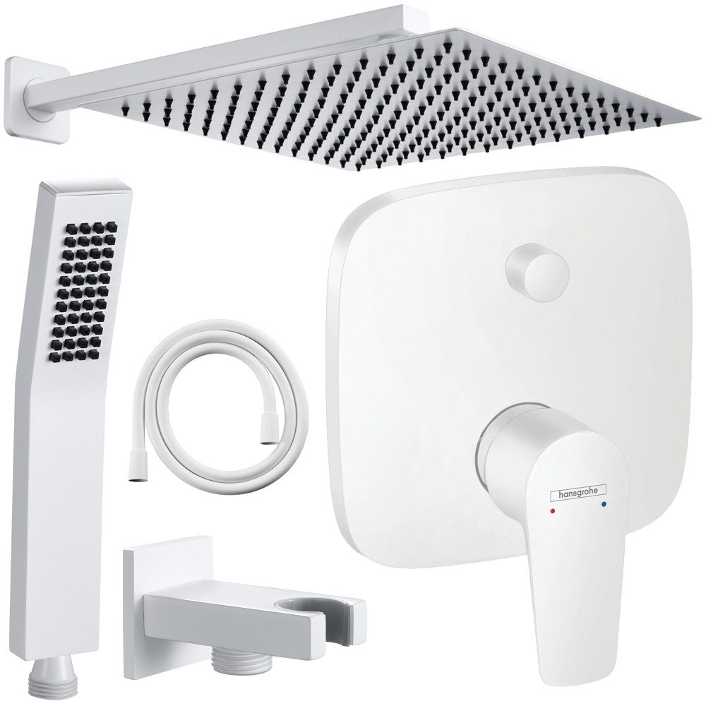 Lieferumfang | [OPTIONAL] Hansgrohe iBox 1 Grundkörper universal, 01800180 Hansgrohe Talis E Einhebel-Wannenmischer Unterputz, für 2 Verbraucher, 71745700 Jowi Handbrause, Messing Mattweiß, Farbe der Düsen: Schwarz Jowi Wandanschlussbogen mit Wandbrausehalter, Messing Mattweiß Jowi Brauseschlauch 1500mm, Mattweiß Jowi Kopfbrause, 300x300mm oder 360x360mm, Farbe der Düsen: Schwarz Jowi Brausearm, Gesamtlänge: 400mm |