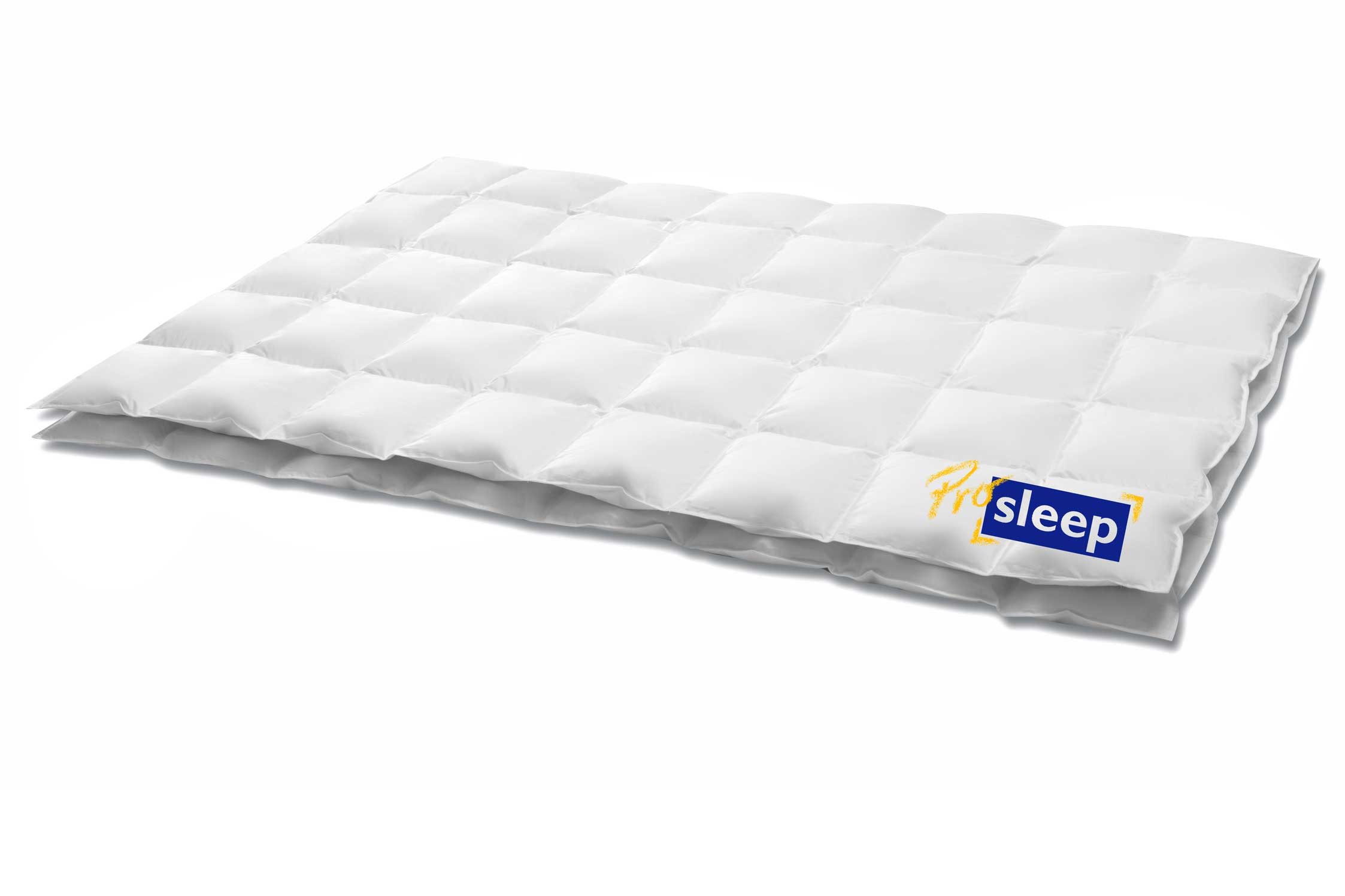 Die Daunendecke Pro Sleep verspricht ein luxuriöses Schlafgefühl dank der sorgfältig ausgewählten Materialien. Die Daunen und Federn stammen aus artgerechter Haltung und unterliegen strengen Qualitätskontrollen.