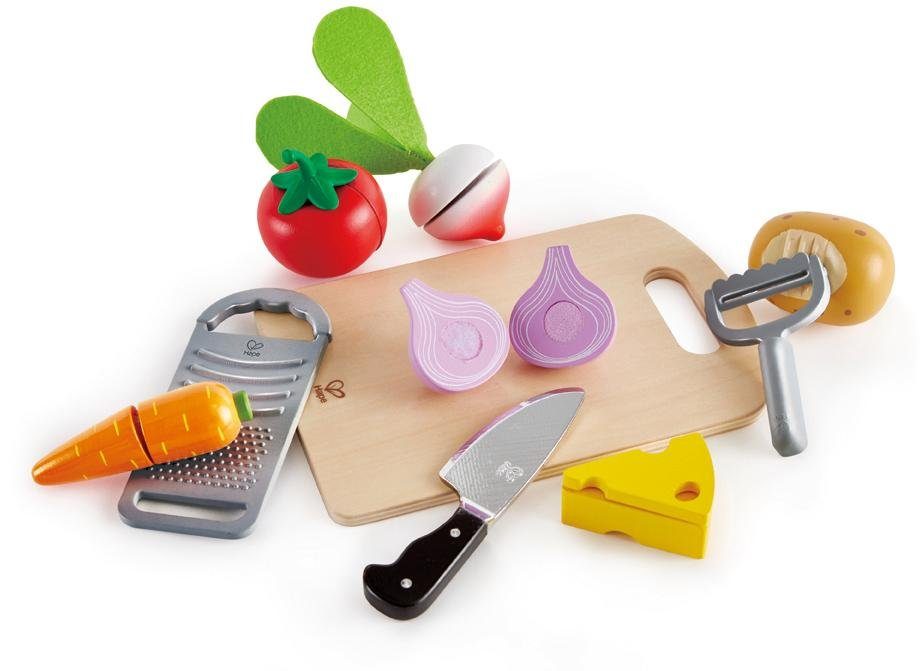 Lieferumfang | Käse, Messer, Reibe, Schneidbrett, Sparschäler, Verschiedenes Gemüse |