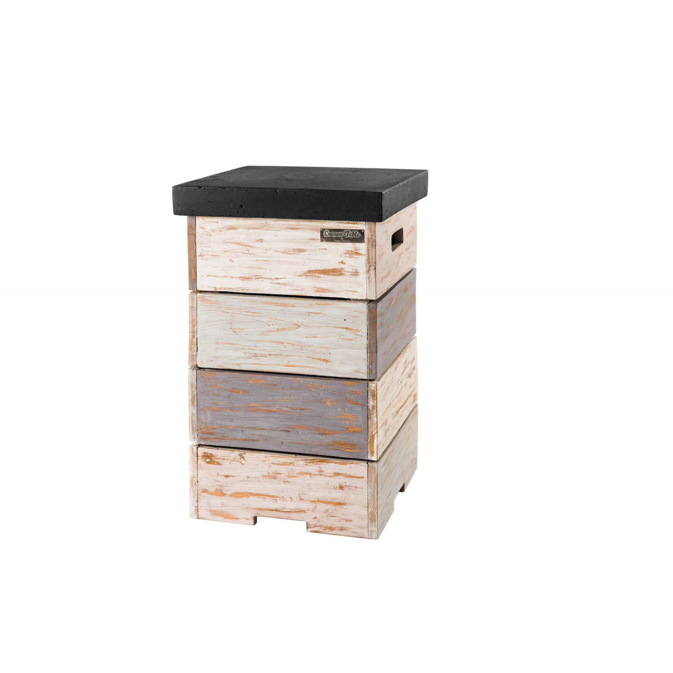 Der Enclosure Beistelltisch ist die optimale Lösung um die Gasflasche ihres Mania Happy Cocooning Feuertisches zu verstecken. Der Beistelltisch ist aus hochwertigem Teakholz im Nice&Nasty-Look mit einer Tischplatte aus wetterbeständigem Verbundstoff in Beton-Optik hergstellt und kann das ganze Jahr über draußen stehen.