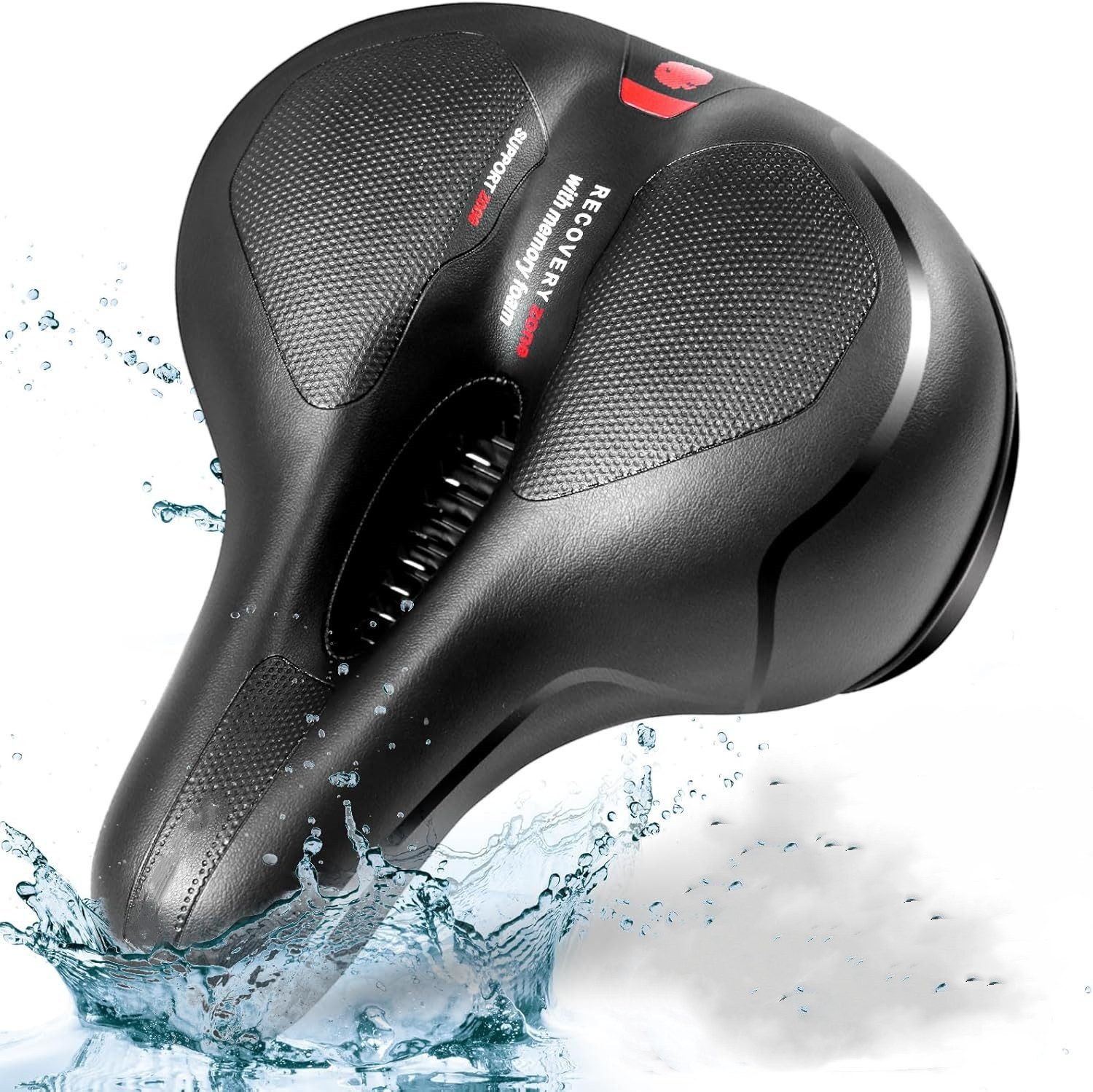 Überlegener KomfortUnser Fahrradsattel mit hochdichtem Formgedächtnispolymer und Kohlenstoffstahl-Federung minimiert Erschütterungen.