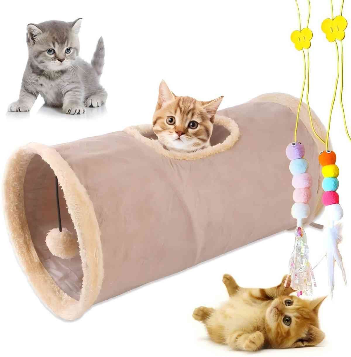 Faltbare Katzentunnel bietet mit seinem weichen Wildleder-Außenmaterial und dem raschelnden Innenmaterial endlose Unterhaltung für Ihr Haustier. Die zwei enthaltenen hängenden Spielzeuge steigern den Spielspaß und animieren Katzen oder andere kleine Haustiere zu mehr Aktivität. Dank des faltbaren Designs lässt sich der Tunnel platzsparend verstauen und ist ideal für den Einsatz zuhause oder unterwegs. Dieser robuste, langlebige Tunnel wurde speziell entwickelt, um der Energie von Haustieren standzuhalten, und sorgt für eine sichere, spaßige Umgebung. Perfekt für alle Katzenliebhaber und Haustierbesitzer, die ihren Vierbeinern eine neue, spannende Spielumgebung bieten möchten.