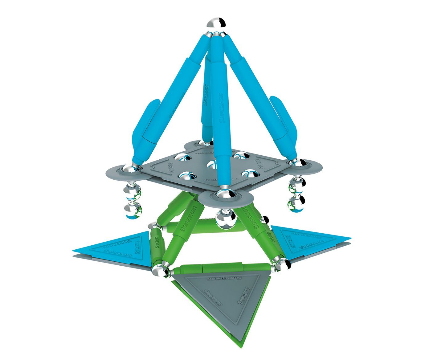 Ausstattung | 1x Prüfstab, 7x kurze Magnetstäbe, 4x lange Magnetstäbe, 20x Kugeln, 6x Clips, 6x Dreiecke, 4x Ringe, 2x Bodenplatten (50 Teile) |