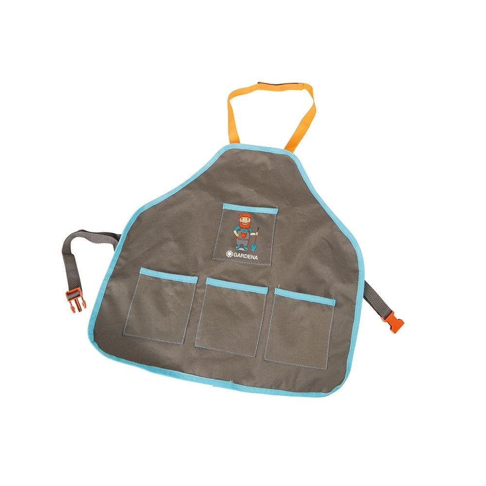 Die GARDENA Gartenschürze, welche ca. 45 x 45 cm groß ist, besitzt 4 Taschen und ist mit einem Klettverschluss ausgestattet. Das Wasser und schmutzabweisende Material ist in den typischen Gardena Farben anthrazit/blau/orange gehalten und schützt die Kinderkleidung durch die beschichtete Oberfläche vor Verschmutzung. Die Schürze ist mit dem lustigen Gärtner „Gardi“ bedruckt.