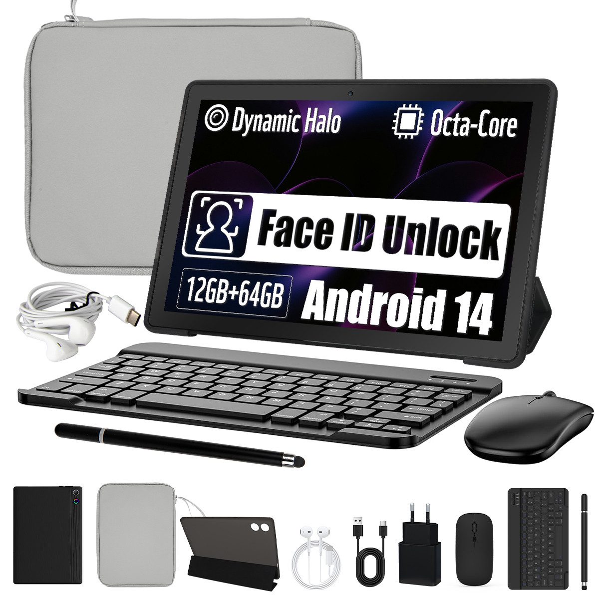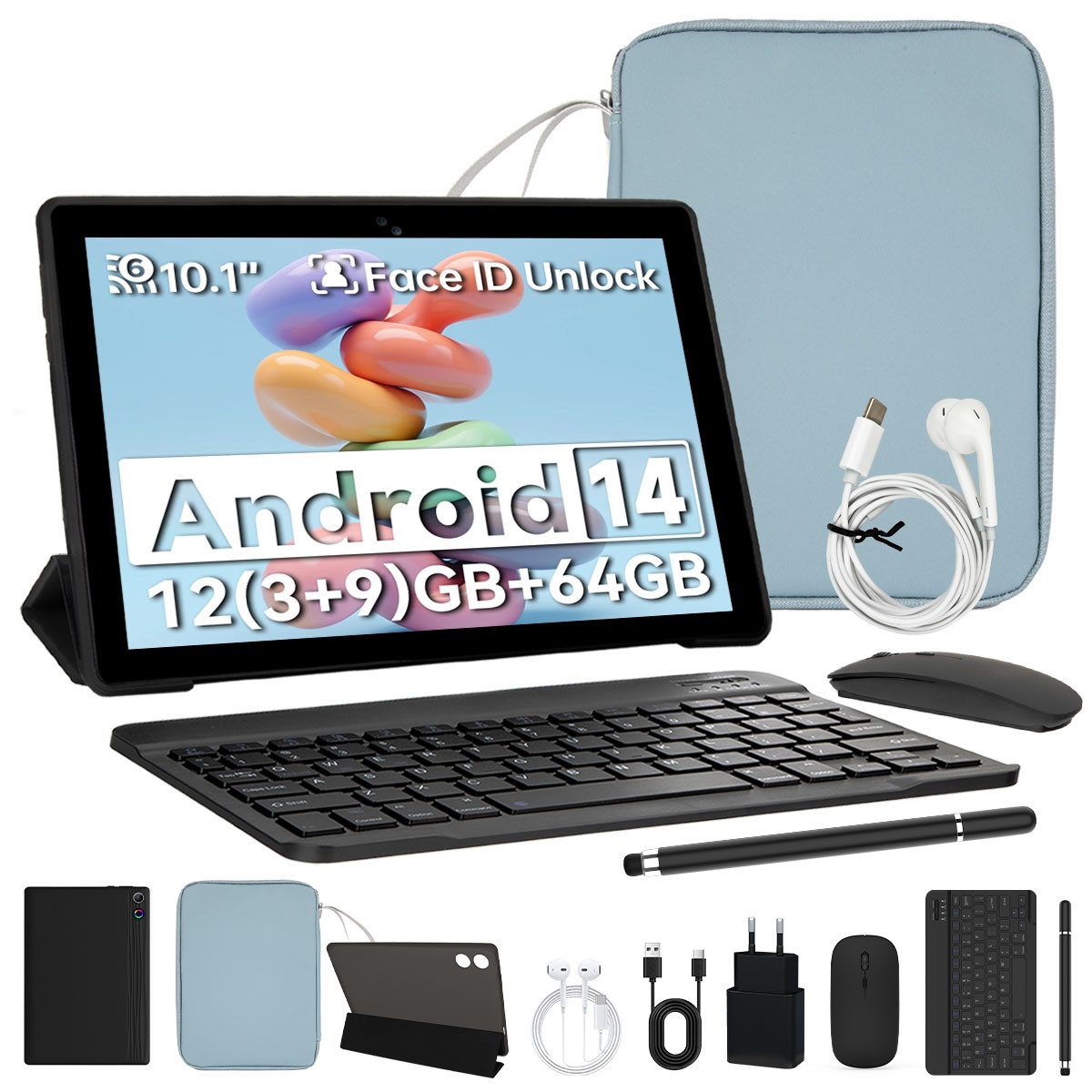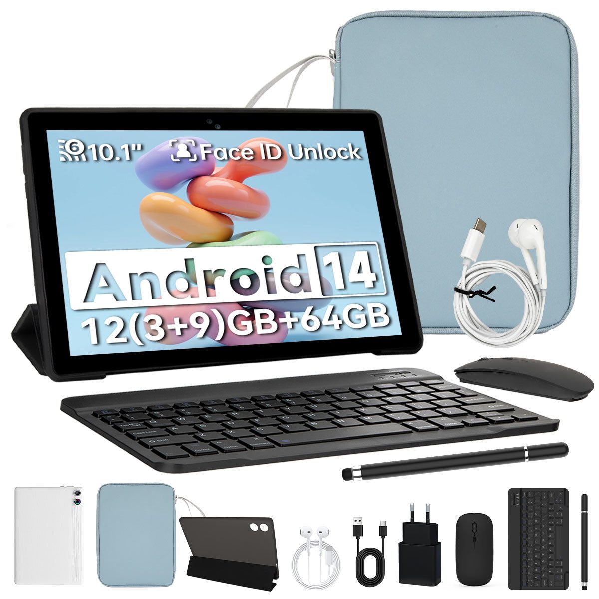 10-Zoll Tablet-PC Komplett-Set mit Zubehör – Ideal für Homeoffice & Schule.