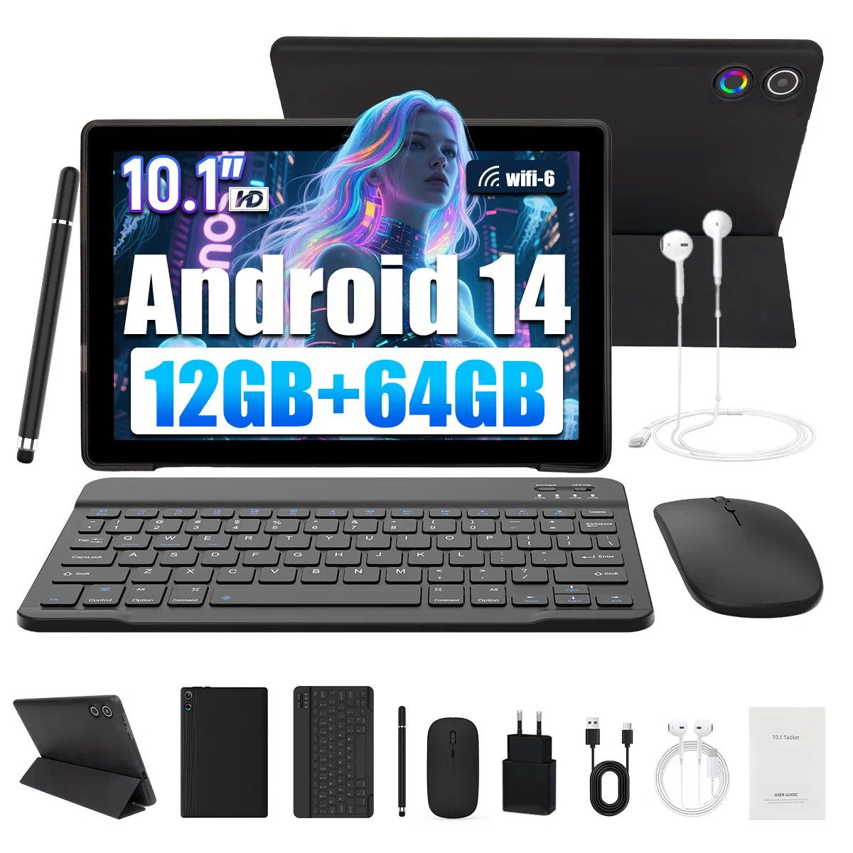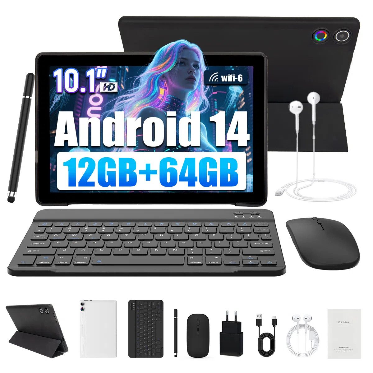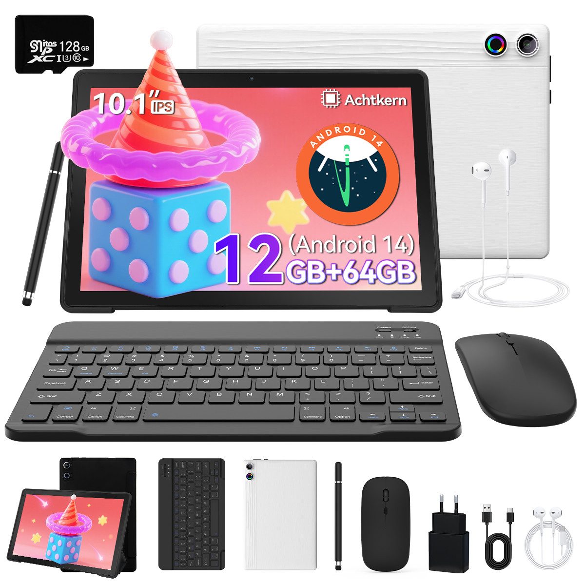 10-Zoll Tablet-PC Komplett-Set mit Zubehör – Ideal für Homeoffice & Schule.