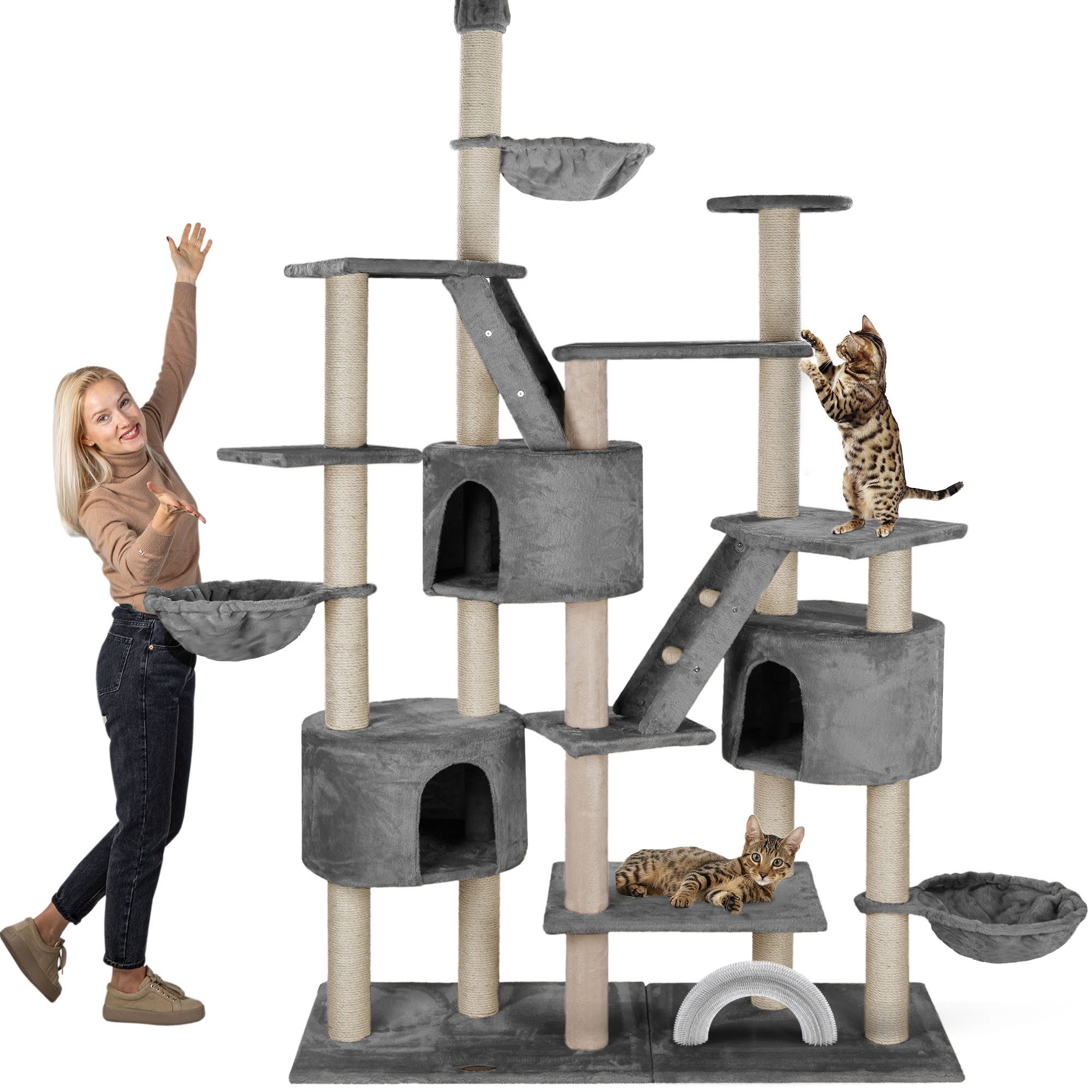 Dieser große Kratzbaum SIMBA hat alles, was das Katzenherz begehrt. Stämme sind mit Natur Sisal umwickelt, hohe Aussichtsplattformen und mehrere Leitern bieten abenteuerlustige Aktivitäten und ausreichend Platz zum Klettern und Spielen. Auch für Gemütlichkeit ist bei diesem Katzenkratzbaum gesorgt, mit den 3 kuscheligen weichen Liegemulden und zahlreichen Höhlen geben Ihrer Katze ausreichend Gelegenheit zum Verstecken, Schlafen und Relaxen.