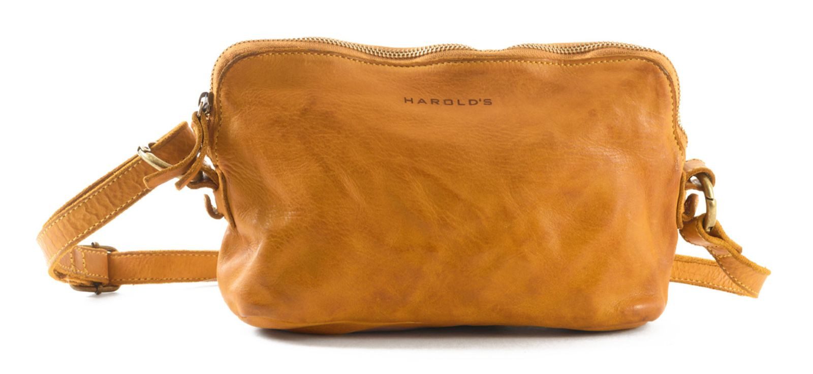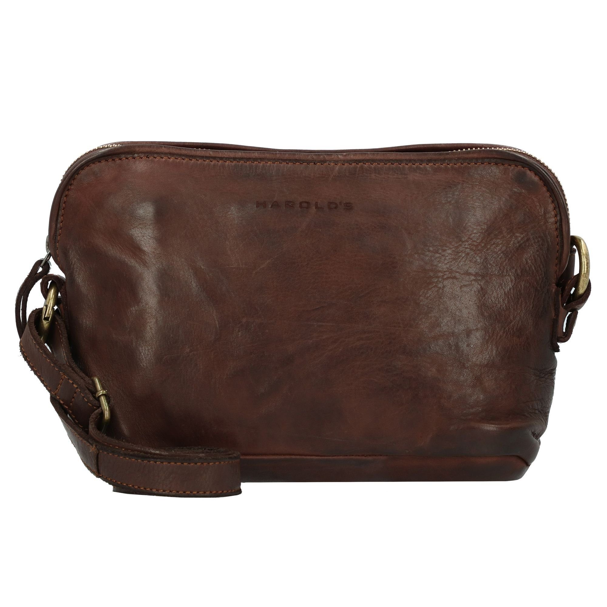 Hochwertige Umhängetasche der Serie Submarine von Harold's mit abnehmbarem, längenverstellbarem Umhängeriemen. Das sorgfältig ausgewählte Leder wird mit pflanzlichen Stoffen gegerbt und nur schonend nachbearbeitet. So erhalten Harold's Produkte ihre einzigartige Haptik und und entwickeln im täglichen Gebrauch ihre ganz eigene Ästhetik. Die Taschen dieser Serie werden aus weichem Rindleder hergestellt und als fertig genähte Taschen gewaschen und erhalten dadurch ihren lässigen Look. Die leicht glänzende Oberfläche sowie die kleinen, goldenen Metallnieten und Verschlüsse verleihen zusätzlich Eleganz und ein edles Vintageaussehen.