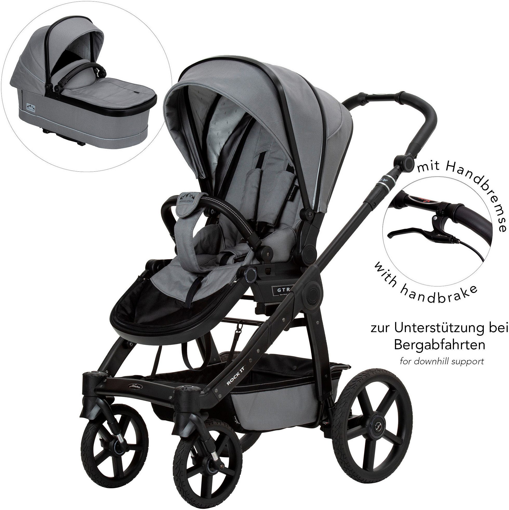 Ausstattung | Höhenverstellbarer Schieber Klimazone im Verdeck Sicherheitsreflektoren am Gestell UV-Schutz 50+ doppelt ausklappbares Sonnenschild geräuschlose Verdeckverstellung höhenverstellbare Fußstütze umsetzbare Sitzeinheit mit Sicherheits-Klicksystem |