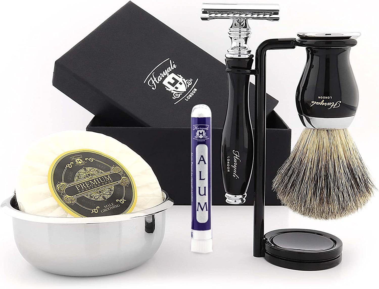 Ausstattung | Rasierhobel Rasierpinsel Doppelständer Aluminiumstab Rasierseife Rasierschale |