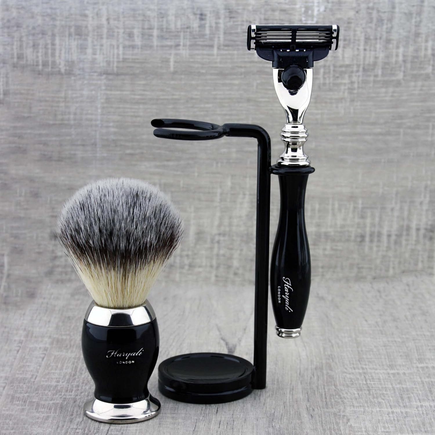 Ausstattung | Syntactic Silvertip-Pinsel 3-Klingen-Mach-3-Rasierer Doppelständer |