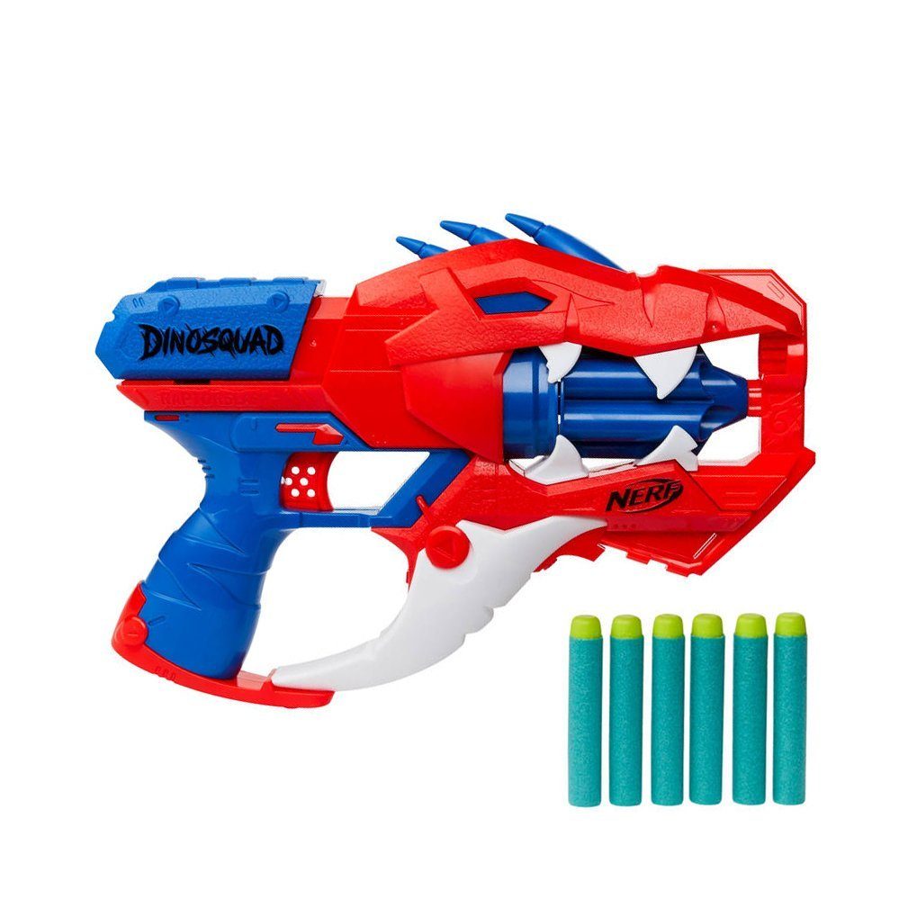 Als Mitglied der Elitetruppe DinoSquad verbünden sich Nerf Fans mit legendären Sauriern. Hier kann die außergewöhnliche Kraft der großartigsten Dinosaurier entfesselt werden, um sich in actionreiche Abenteuer zu stürzen. Mit dem Nerf DinoSquad Raptor-Slash Blaster ist dinotastischer Spaß angesagt. Er präsentiert saurierstarke Details und fängt den Look eines Velociraptor Dinosauriers perfekt ein.