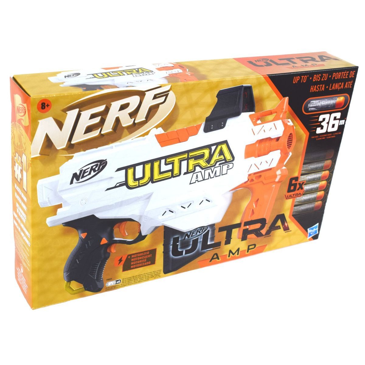 Die NERF Ultra AMP ist deine neue Geheimwaffe im nächsten NERF-Battle. Dank der neuen Ultra-Darts und der motorisierten Abschussmechanik hast du mit bis zu 36 m Reichweite einen klaren taktischen Vorteil.