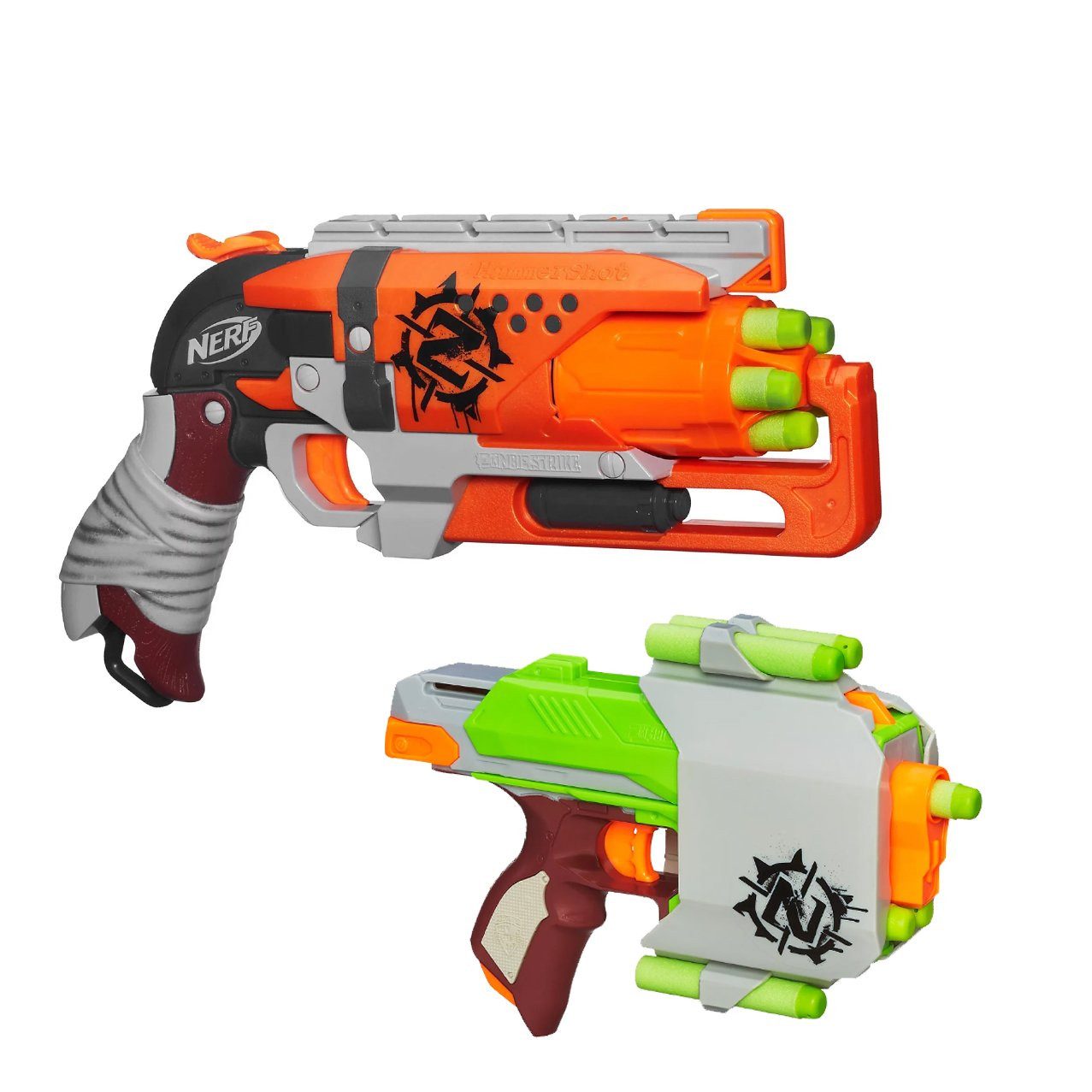 Ausstattung | - NERF Zombie Strike Hammershot- 5 Zombie Strike Darts- NERF Zombie Strike Sidestrike- 6 Zombie Darts- Holster |