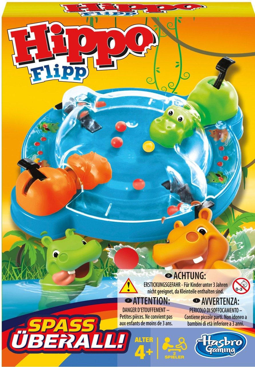 Mit den Kompaktspielen von Hasbro ist der Spaß überall dabei! Auf der Reise, im Urlaub, beim Ausflug - die beliebtesten Spieleklassiker im handlichen Taschenbuchformat sorgen für jede Menge Spiel und Spaß und sollten in keinem Reisegepäck fehlen. An die Hippos, fertig los! Beim aufregenden Murmelmampfen treten zwei hungrige Hippos gegeneinander an. Rasanter Spielspaß ist garantiert, wenn die Spieler gleichzeitig auf den Schwanz ihres jeweiligen Hippos drücken und versuchen, die herumkullernden Murmeln zu futtern. Wer zuerst die goldene Murmel mampft, gewinnt! Hippo Flipp - lustiges Murmelmampfen für unterwegs! Diese Kompaktausgabe ist besonders praktisch für unterwegs, da keine Teile herausfallen können. Geschützt durch die Kuppel kullern die Murmeln nur im Inneren der Spielbasis herum. Im Zug, beim Picknick oder beim Flug - Hippo Flipp ist das muntere Spaßspiel für 2 Spieler ab 4 Jahren.Artikeldetails:BezeichnungHasbro B1001100 Hippo Flipp Kompakt, für 2 Spieler, ab 4 JahrenArtikelnummer60403791EAN5010994851958HerstellernummerB1001100MarkeHasbro Gaming|HasbroGeschlechtunisexAltersfreigabe4 JahreEmpfohlenes Mindestalter4 JahreEmpfohlenes Höchstalter99 JahreMindestspieleranzahl2 SpielerSpieldauer10 MinutenGewicht177 gPackmaß (Длина x Breite x Höhe)23.8 x 16.1 x 5 cmBatterie-TypMIXEDWarnhinweis:Ab 4 Jahren geeignet Für 2 Spieler