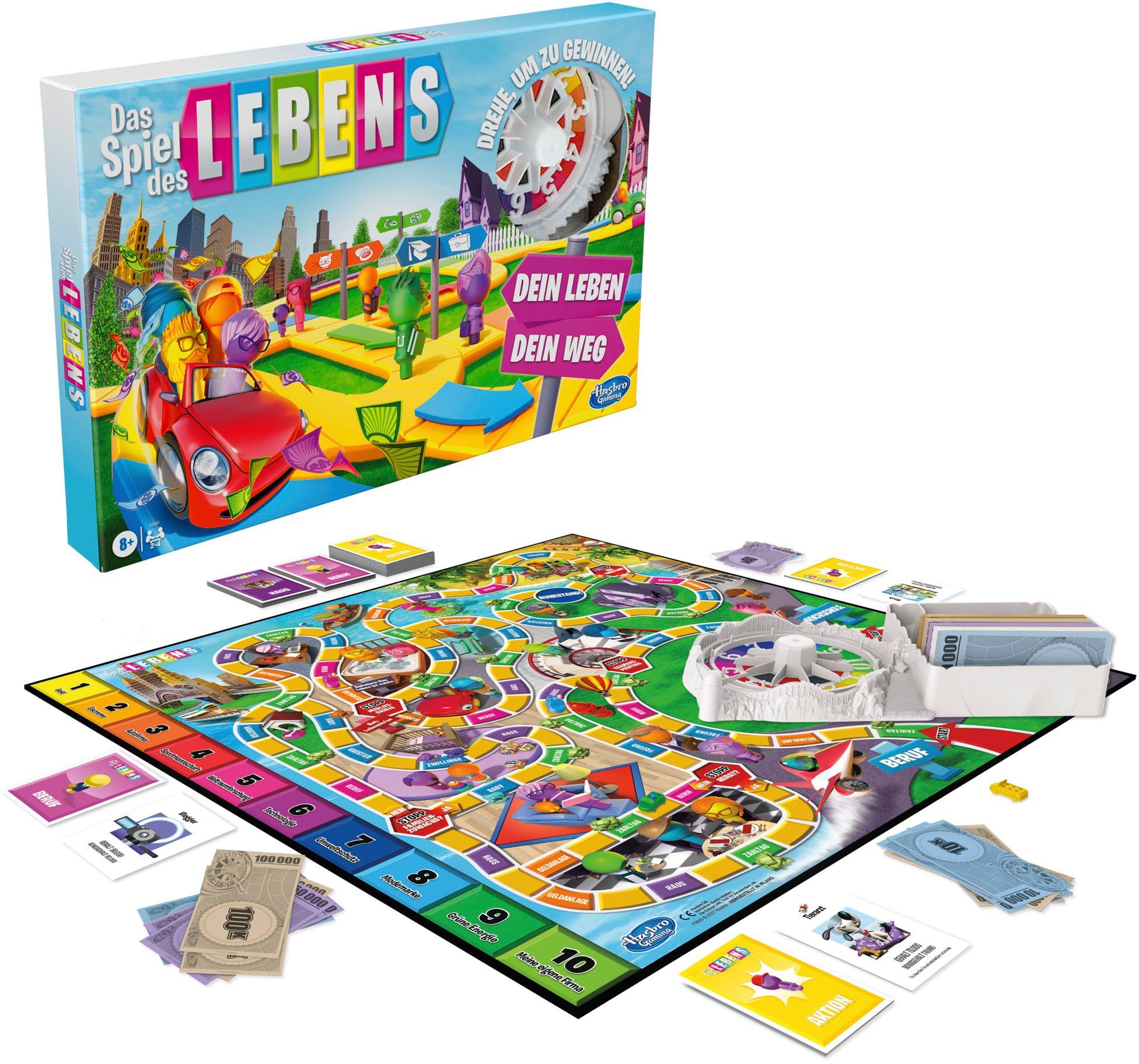 Inhalt | 36 Stifte, 4 Autos, 90 Karten (55 Aktionskarten, 20 Berufskarten, 11 Hauskarten, 4 Geldanlagekarten), Spielanleitung, Spielgeld, Spielplan mit Drehscheibe |