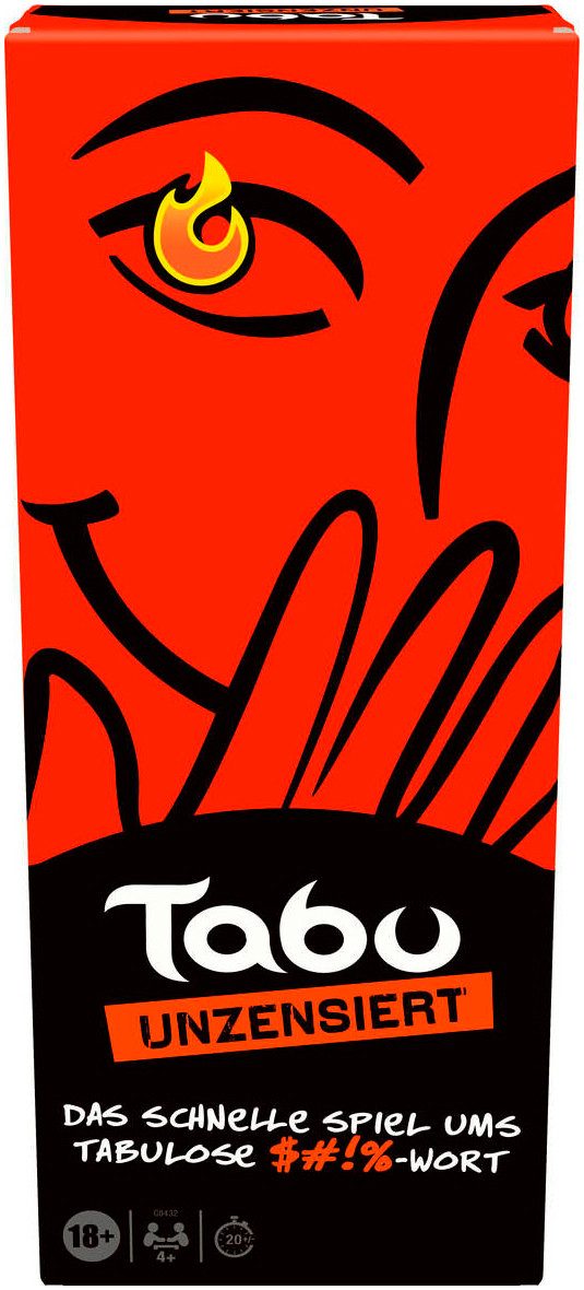 Das schnelle Spiel ums richtige Wort wird nun ... tabulos! Dies ist eine Version von Tabu, nur für Erwachsene! Auch bei Tabu Unzensiert gilt es, seinem Team den Suchbegriff zu erklären, ohne dabei selbst eines der Tabu-Wörter zu verwenden. (Diese sind meist so tabu, dass wir sie auch hier nicht nennen wollen.) Wie bringen Sie Ihr Team dazu, den Begriff „Aubergine“ zu erraten, ohne dabei selbst die Wörter „lila“, „Gemüse“, „grillen“, „Emoji“ oder „Form“ zu nennen? Dieses Partyspiel enthält 240 Karten mit 480 Suchbegriffen aus den Bereichen Popkultur, Trends und wahrscheinlich welche, die unter der Gürtellinie sind. Beim Rennen gegen die Zeit versuchen die Spieler, gut gewählte Hinweise zu geben, damit ihr Team die Begriffe schnell errät. Wer das Unaussprechliche ausspricht, wird vom gegnerischen Team ausgequietscht und verliert diesen Punkt. Sind Sie auf der Suche nach einem vergnüglichen Partyspiel für Erwachsene? Dieses gewagte Spiel eignet sich für einen Abend mit Freunden. Ab 18 Jahren. Taboo ist ein Warenzeichen von Hersch and Company, Los Angeles, CA. Hasbro sowie alle dazugehörigen Begriffe sind Marken von Hasbro.