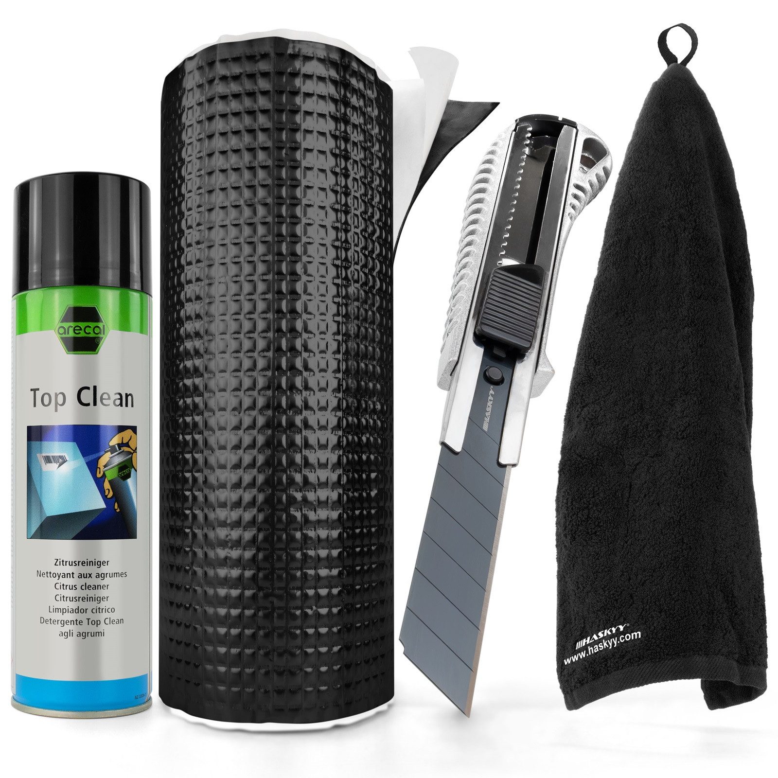 Dieses Set ist ideal zum Kombinieren mit unseren HASKYY-Produkten wie Alubutyl, Softbutyl, Goldband, Abdeckfolie und vielem mehr. Ob für Renovierungsarbeiten, kreative Bastelprojekte, Auto- oder Gartenpflege, das HASKYY Set hat alles, was Sie brauchen.