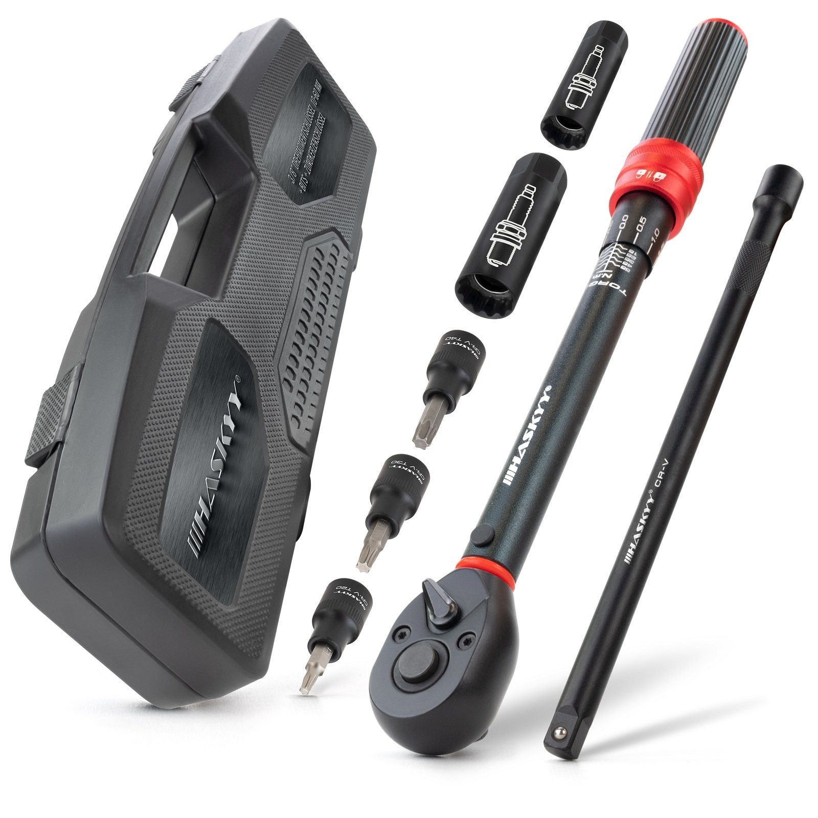 3/8" Drehmomentschlüssel 10-60 Nm mit Torxbits T20, T30 und T40 inkl. 2x Zündkerzenstecknuss 14-16 mm mit Magnet + Verlängerung 25cm - HASKYY®
