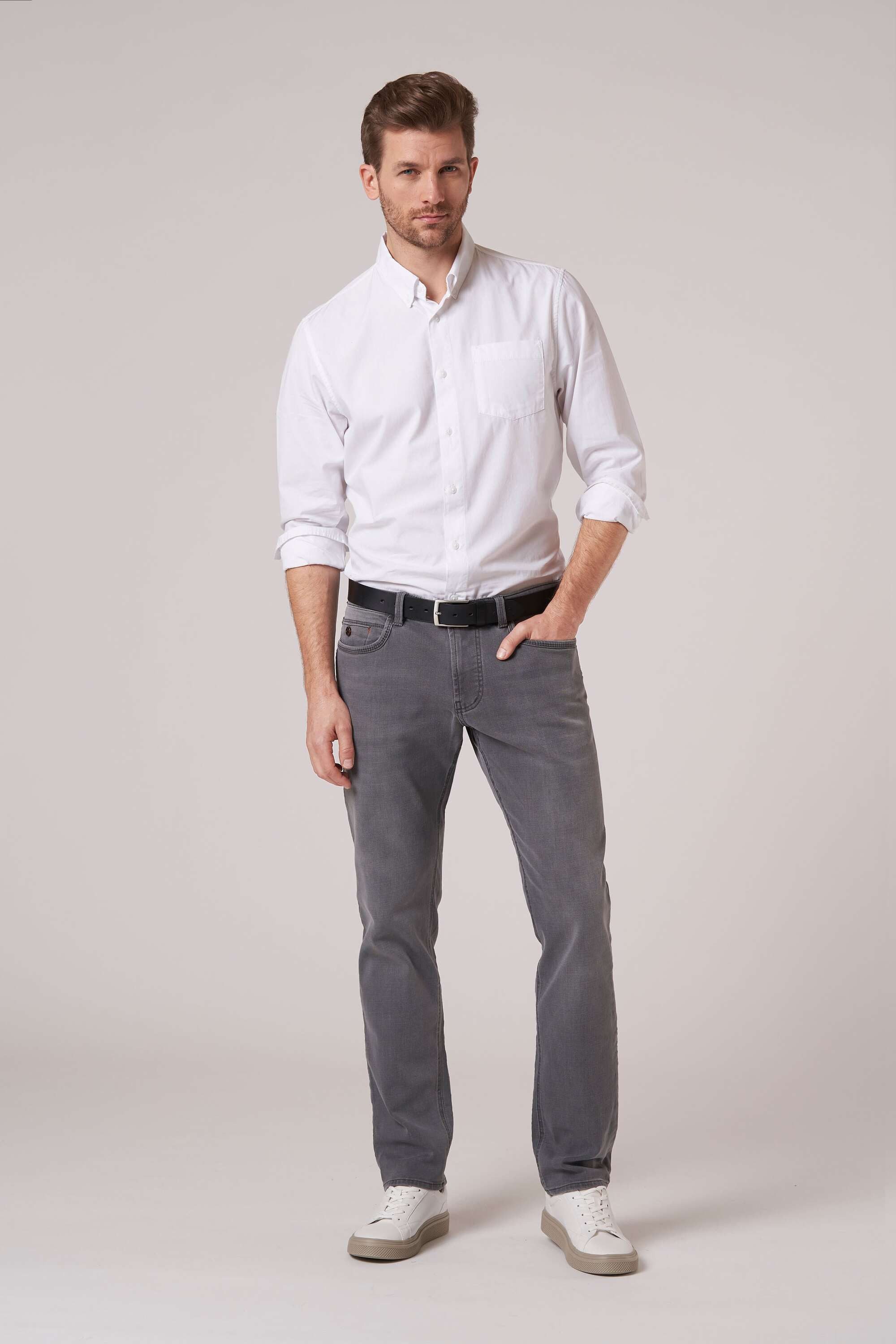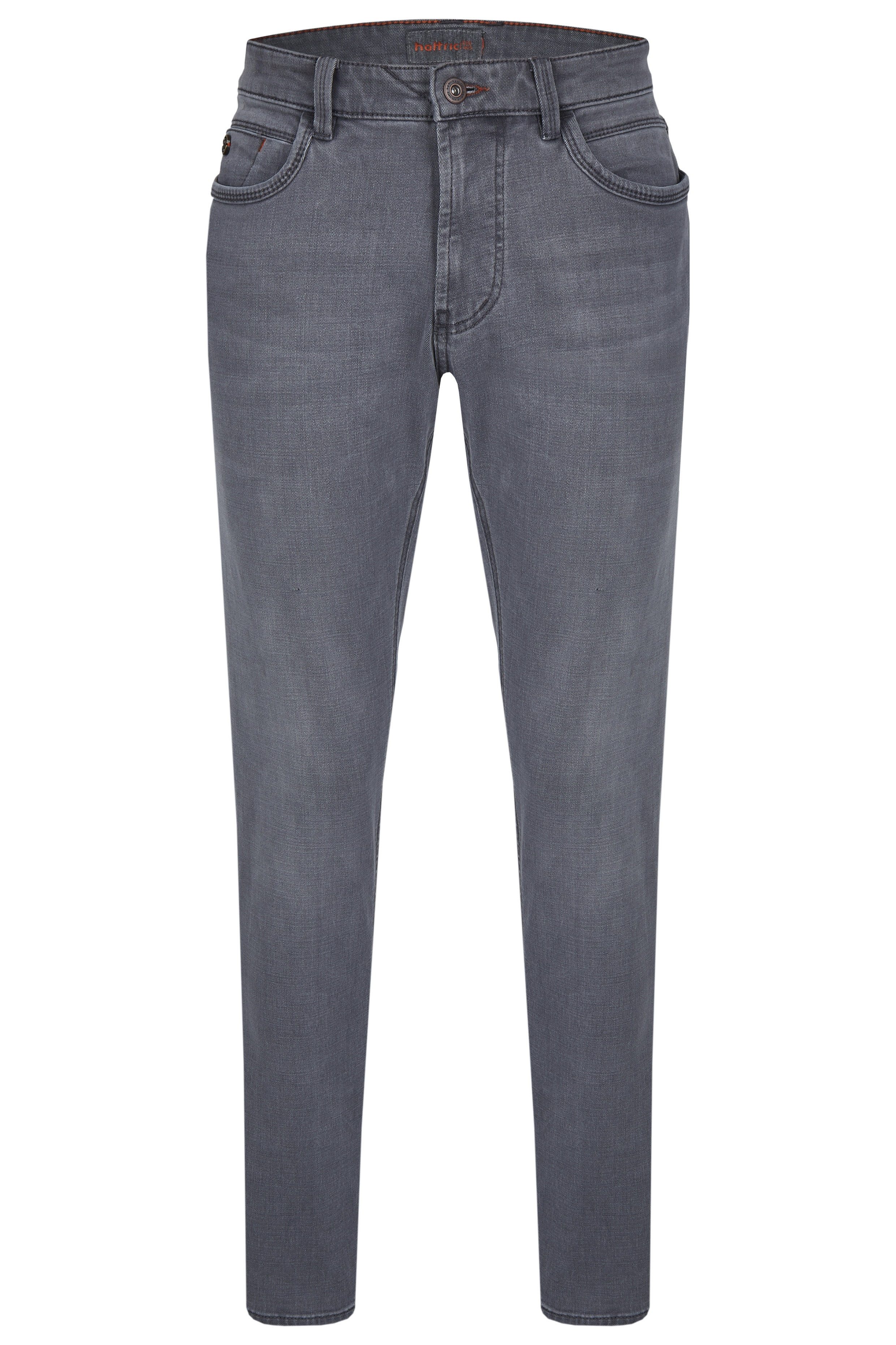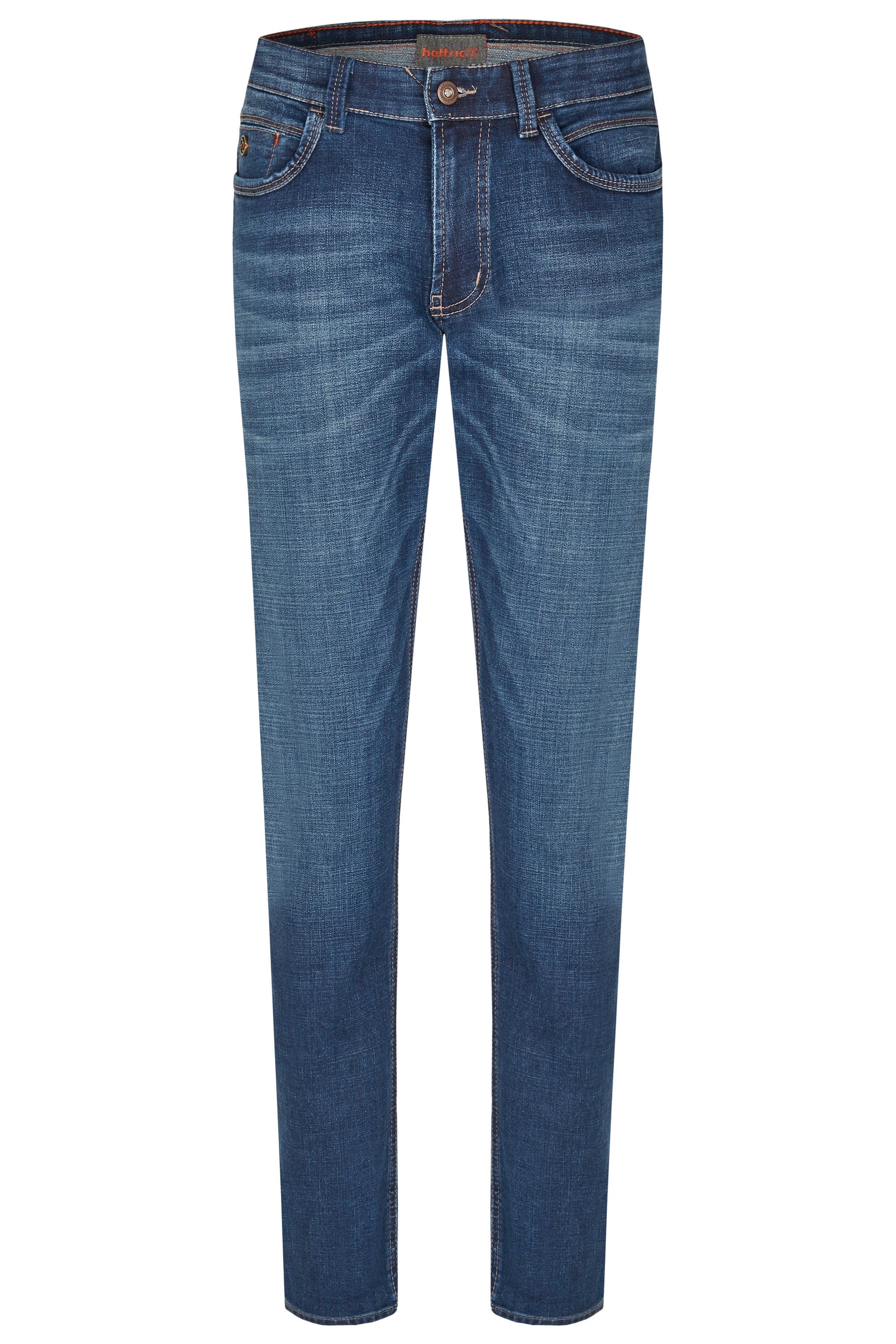 Bei der Jeanshose Harris Cross Denim aus der sportive Denim 5-Pocket Kollektion mit Cross-Optik und Used-Waschungen handelt es sich um eine Herrenjeans für jeden Anlass und für jeden Stil. Die hattric Jeanshose besteht zu 72% aus Baumwolle, zu 25% aus Polyester, zu 2% aus Viskose und zu 1% aus Elasthan. Das Modell Harris, mit einer Fußweite von 36 cm, verleiht dir durch den Stretch Effekt ein angenehmes Tragegefühl. Geschnitten ist das Modell Harris für ein schlankes Bein sowie eine niedrige Leibhöhe. Wie auf dem Bild zu erkennen ist, zeichnet sich die Jeanshose über einen hattric-Lederpatch und einen hochwertigen Reißverschluss aus.
