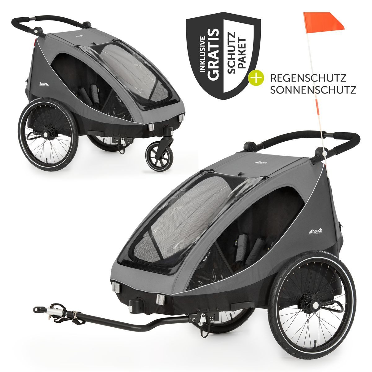 Der Dryk Duo Fahrradanhänger von Hauck ist die perfekte Wahl für aktive Familien. Er kombiniert Fahrradanhänger und City-Buggy in einem, ideal für Stadt und enge Radwege. Mit wenigen Handgriffen wird der Anhänger in nur 4 Schritten zum komfortablen Buggy umgebaut. Im Lieferumfang enthalten: ein praktisches Schutzpaket mit Regen- und Sonnenschutz.