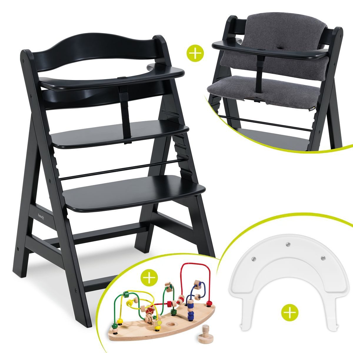 Der Hochstuhl Alpha Plus Black von Hauck bietet eine durchdachte Kombination aus Sitzkomfort und Spielmöglichkeiten. Gefertigt aus stabilem Buchenholz, wächst er mit Deinem Kind mit und sorgt durch die verstellbare Sitz- und Fußplatte für eine ergonomische Sitzposition in jeder Wachstumsphase.