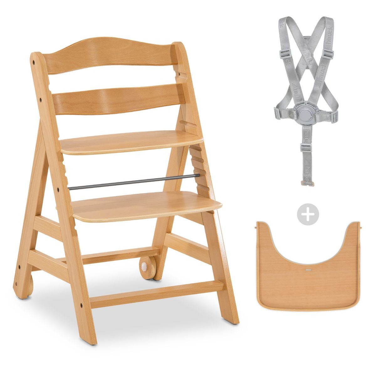 Mit dabei ist außerdem ein abnehmbarer Holztisch. So kannst Du den Hochstuhl flexibel und auch freistehend nutzen.