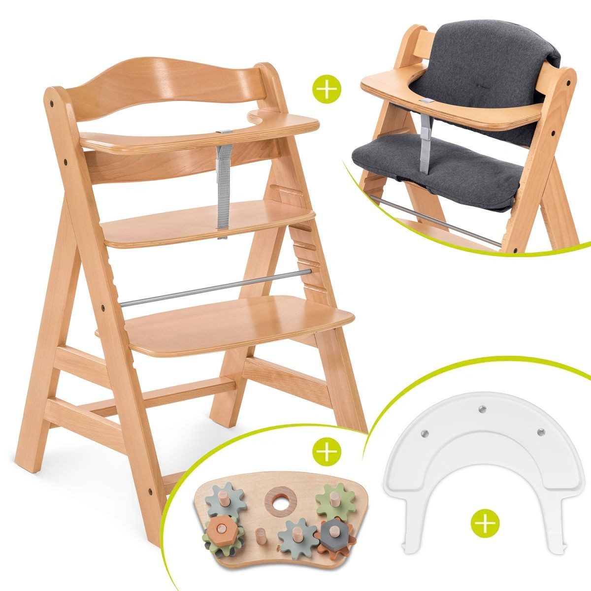 Lieferumfang | Hauck Alpha Plus Hochstuhl, Schutzbügel, Schrittgurt, 5-Punkt-Gurtsystem, Hauck Sitzverkleinerer Highchairpad Select in Jersey Charcoal, Hauck Play Tray Basis für Alpha & Beta Hochstuhl, Hauck Play Repairing - Gears & Nuts |