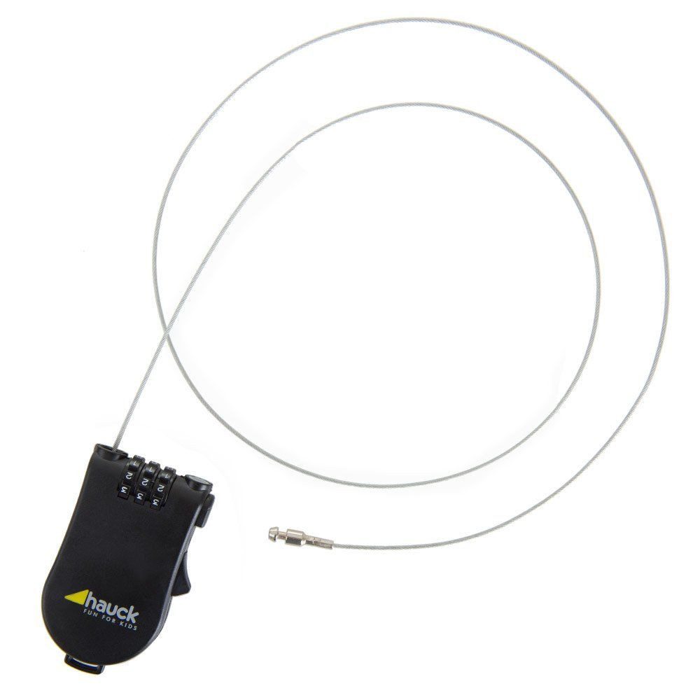 Das Kinderwagen-Schloss Lock Me 2 von Hauck Deinen Wagen gegen Diebstahl. Das Zahlenkombinationsschloss ist mit einem Stahlseil versehen, mit welchem Du Deinen z.B. an Fahrradständern sichern kannst. Dank Einrollautomatik verschwindet es nach Gebrauch sofort wieder im Schloss.