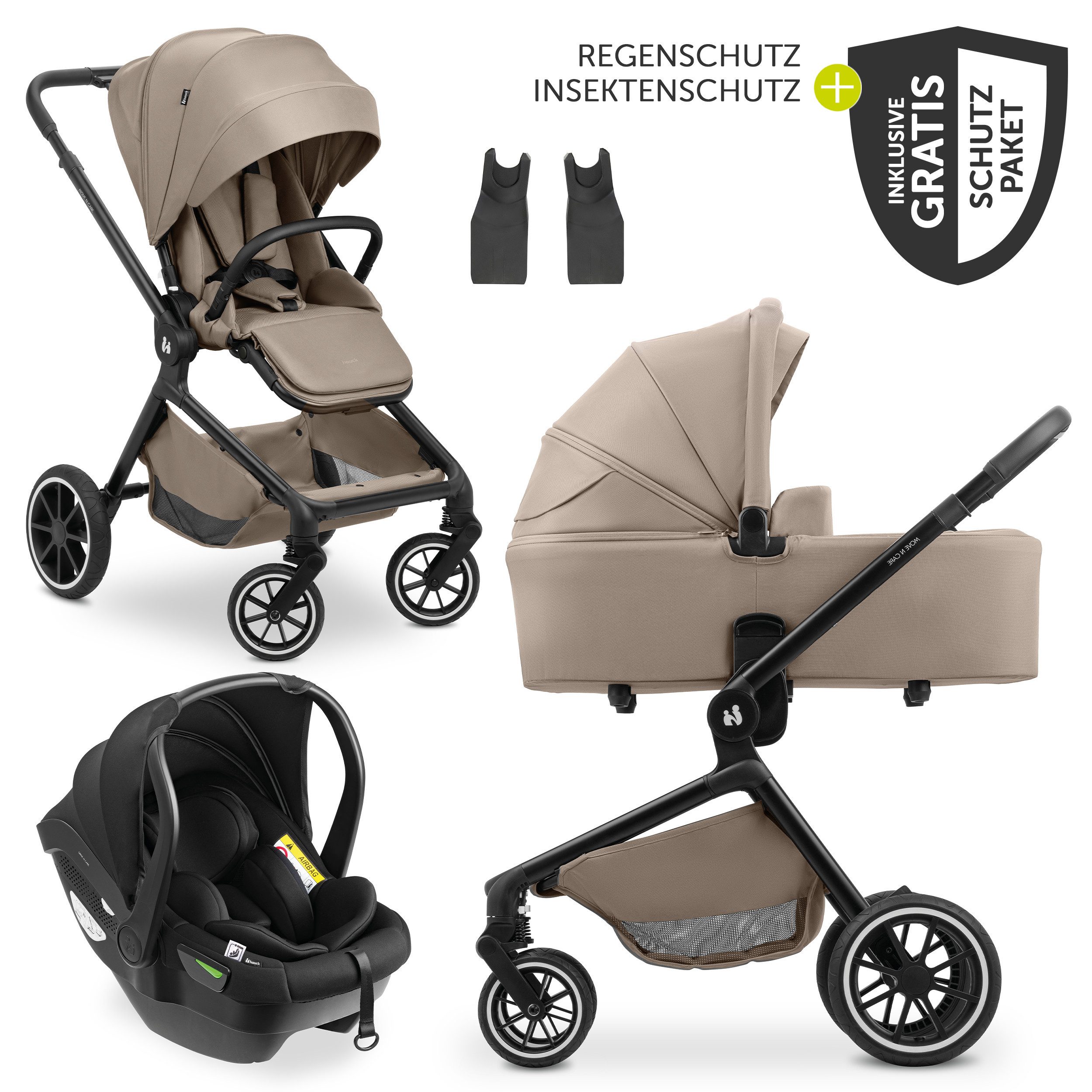 Das 3in1 Kinderwagen-Set Move N Care Trio Set von Hauck begleitet Euch von Anfang an zuverlässig durch den Alltag. Herzstück ist der vielseitige Kinderwagen mit hochwertiger Babywanne und umwandelbarem Sportsitz – ergänzt durch die sichere i-Size Babyschale Drive N Care. Ein umfangreiches Zubehörpaket für jedes Wetter rundet das Set ab, darunter Regenschutz, Insektenschutz und Adapter. So seid Ihr ab der Geburt bestens ausgestattet, ob unterwegs mit dem Auto oder zu Fuß.