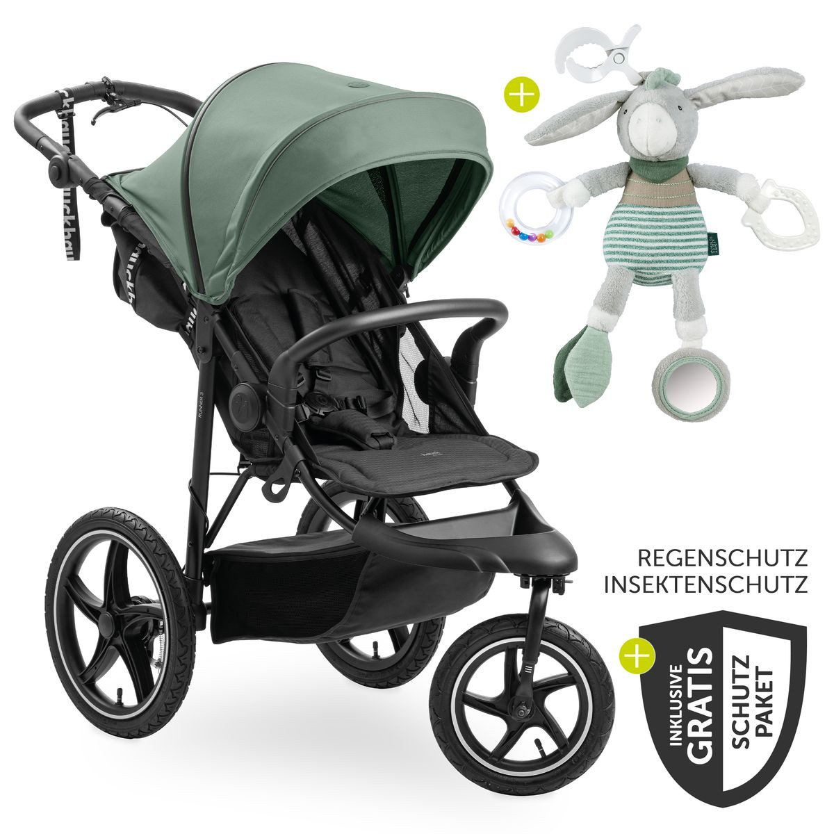 Lieferumfang | Hauck Jogger Runner 3 - Jungle Green Schutzbügel XL-Sonnenverdeck UV-Schutz 50+ XL-Einkaufskorb Getränkehalter |
