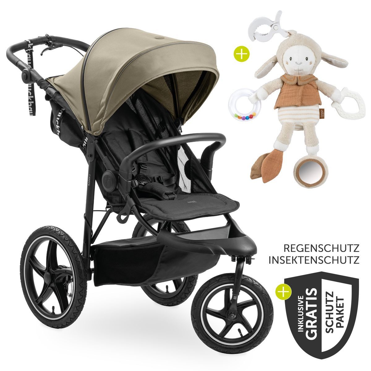 Lieferumfang | Hauck Jogger Runner 3 - Olive Schutzbügel XL-Sonnenverdeck UV-Schutz 50+ XL-Einkaufskorb Getränkehalter |