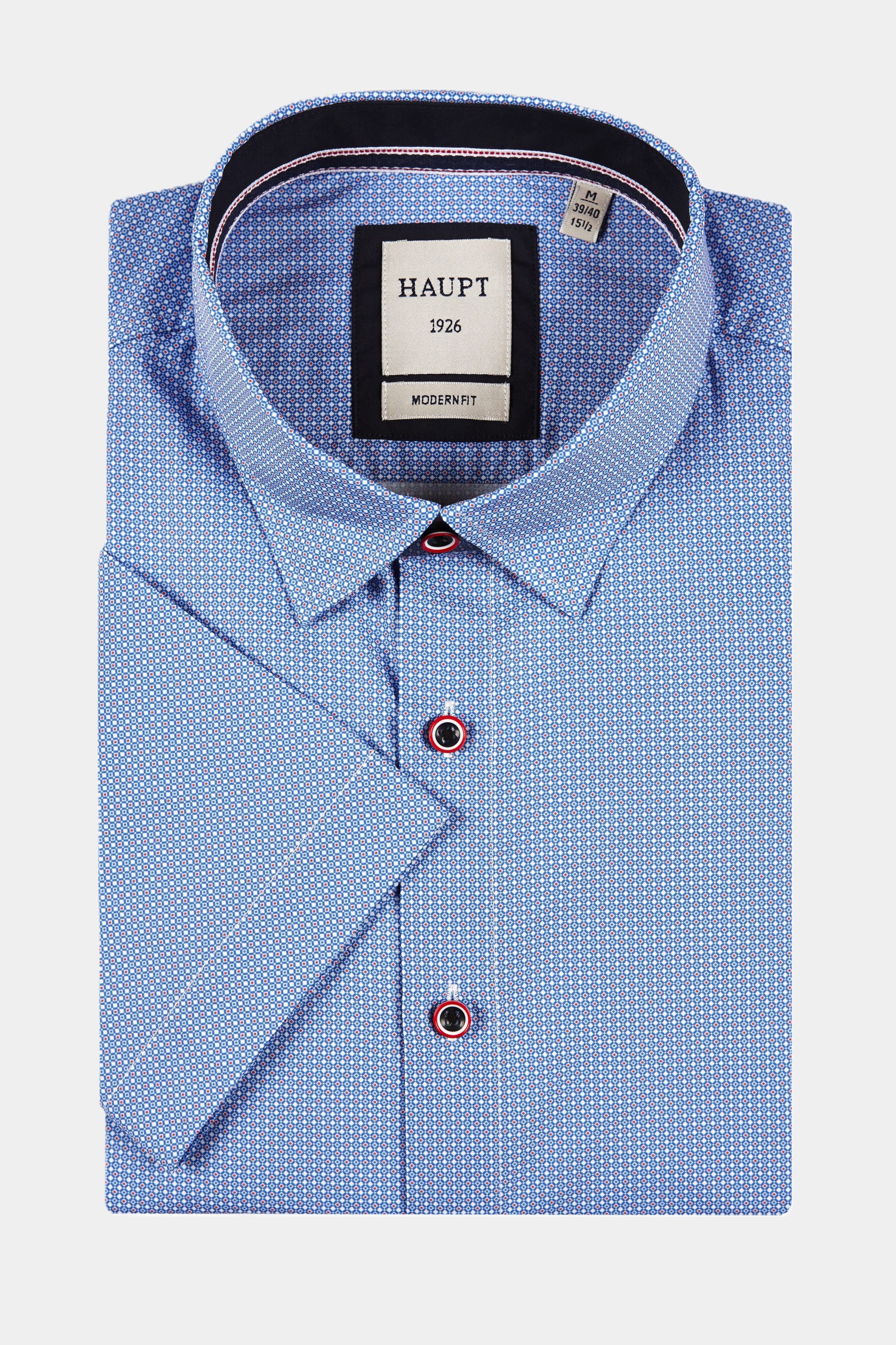 Dieses Herrenhemd aus reiner Baumwolle von der Marke Haupt bietet einen modern fit Schnitt und kurze Ärmel für mehr Komfort. Der Kragen verleiht dem Hemd einen Hauch von Eleganz. Perfekt für einen lässigen, aber dennoch stilvollen Look.