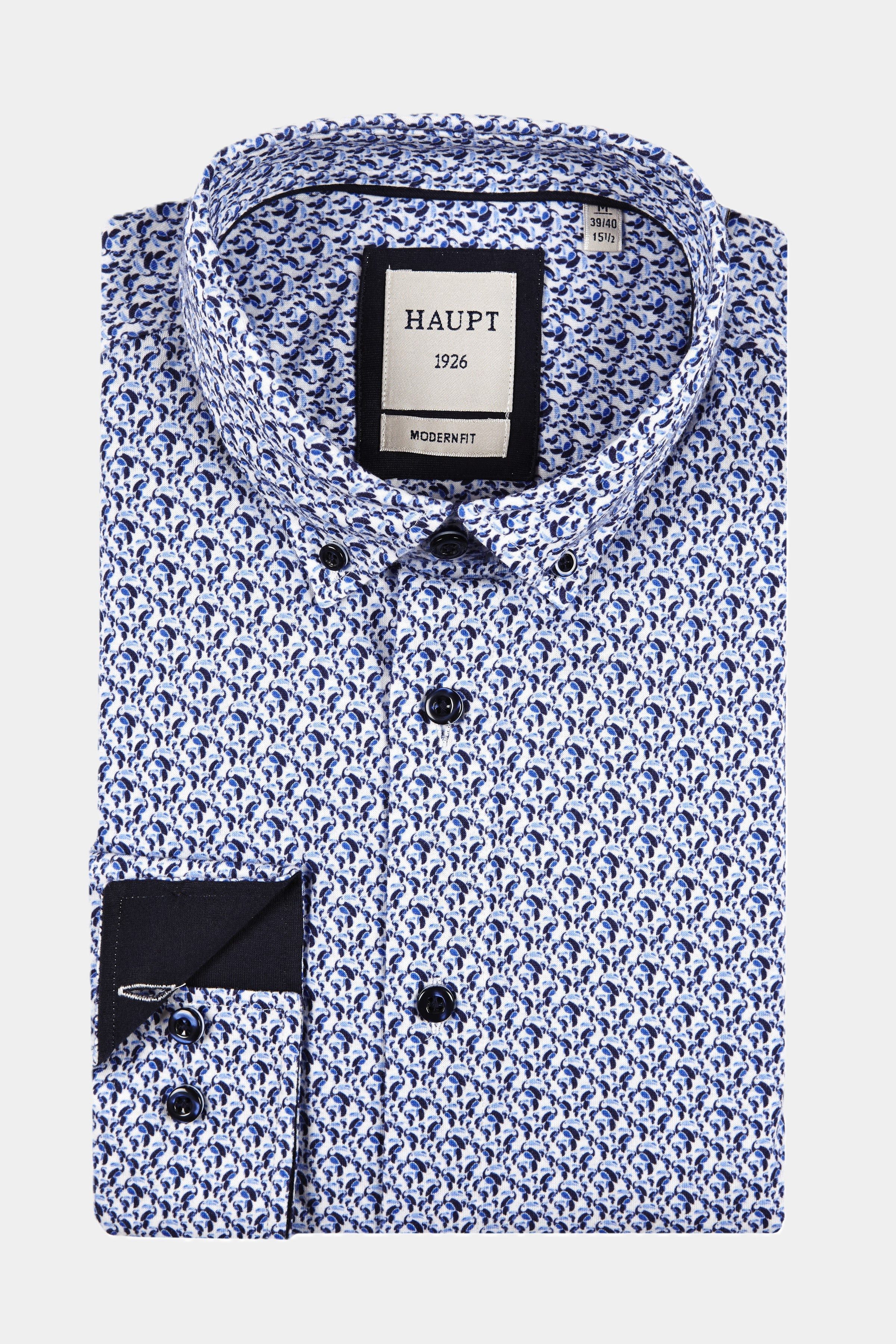 Dieses Herrenhemd in modern fit Passform und langem Arm von Haupt ist ein Must-Have für jeden Mann. Hergestellt aus hochwertiger Baumwolle, bietet es eine perfekte Mischung aus Tragekomfort und stilvoller Optik. Ein Navy-Print rundet das Design ab. Holen Sie sich dieses hochwertige Hemd für einen modernen Look!