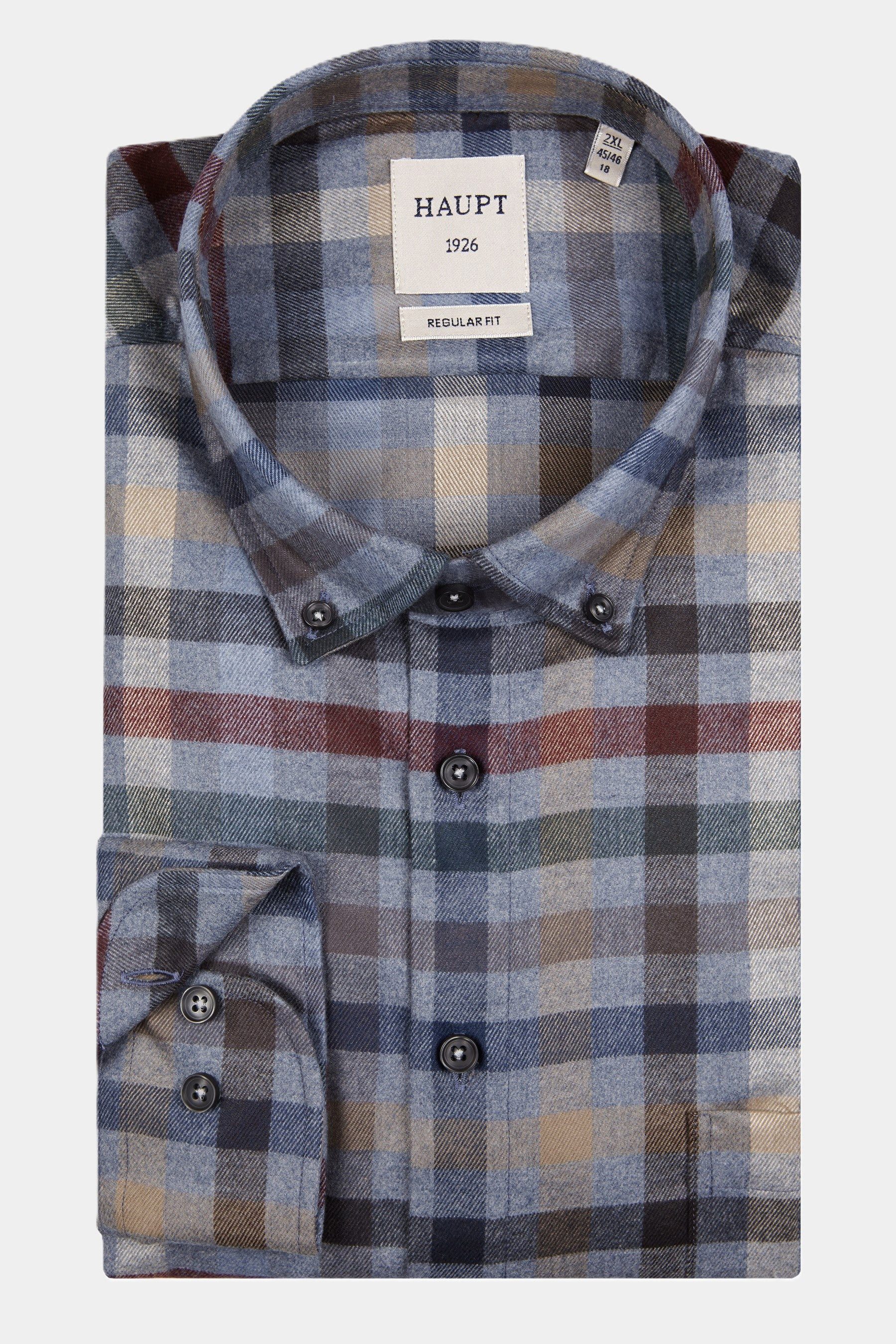 Dieses karierte Herrenhemd der Marke Haupt ist ein Must-Have für jeden Kleiderschrank. Der Regular fit Schnitt und die praktische Brusttasche machen es zu einem vielseitigen Begleiter für jede Gelegenheit. Perfekt für einen lässigen Abend.