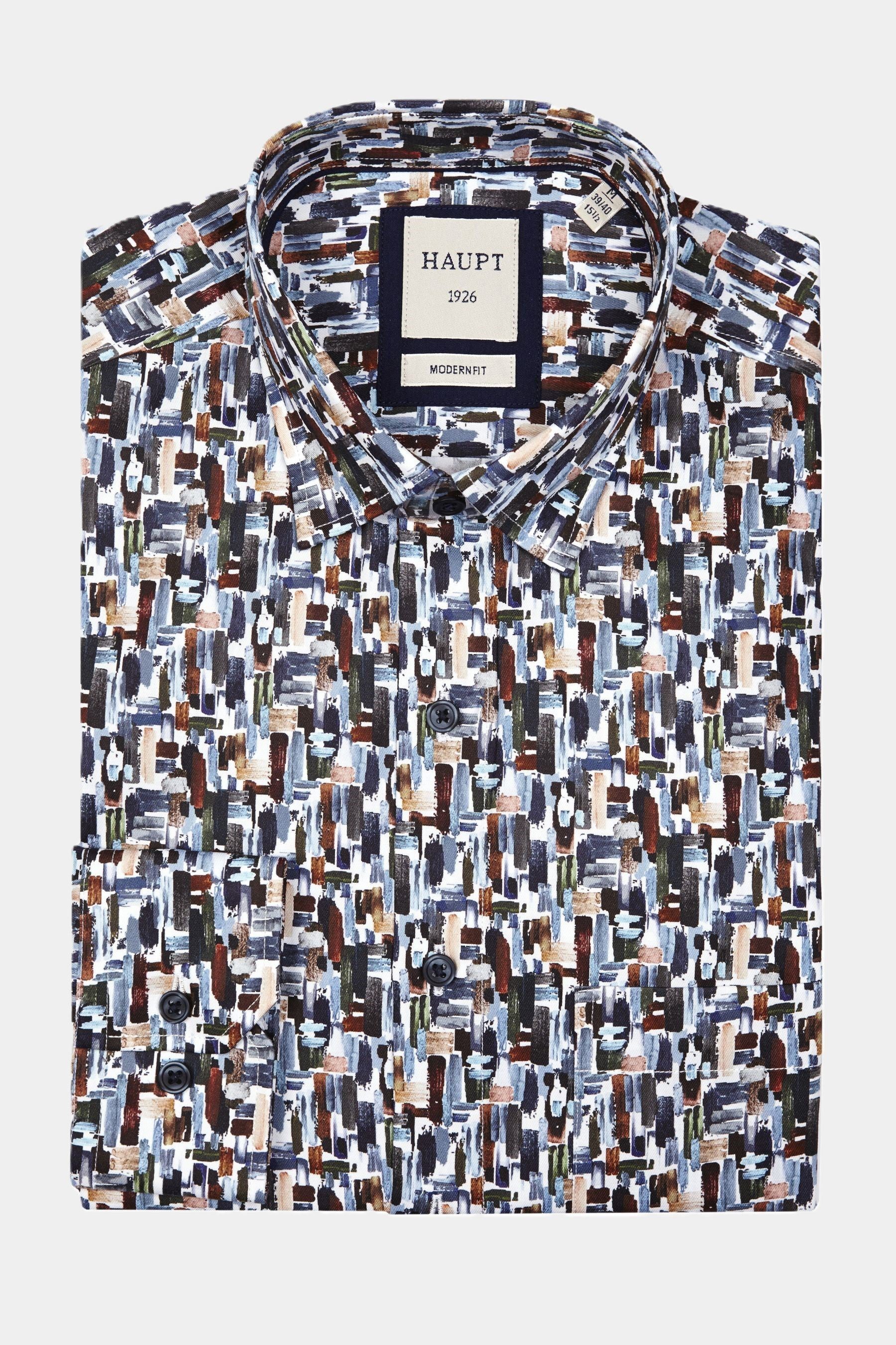 Dieses hochwertige Langarmhemd der Marke Haupt begeistert mit seinem einzigartigen abstrakten Muster in Erdtönen und Blau, das für einen modernen und stilvollen Look sorgt. Der Modern-Fit-Schnitt bietet eine figurbetonte, aber bequeme Passform, während der weiche, atmungsaktive Baumwollstoff für optimalen Tragekomfort sorgt. Perfekt für Business-Meetings, gehobene Freizeitlooks oder besondere Anlässe!