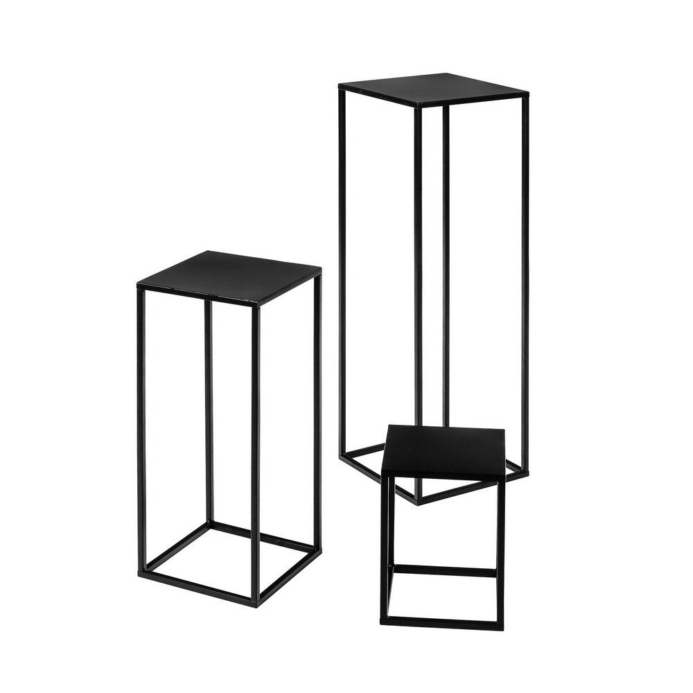 - Metallpodest 3er-Set bestehend aus: - 1 x kleines Podest: 22 x 22 x 30 cm (LxBxH) - 1 x mittleres Podest: 26 x 26 x 60 cm (LxBxH) - 1 x großes Podest: 30 x 30 x 90 cm (LxBxH)