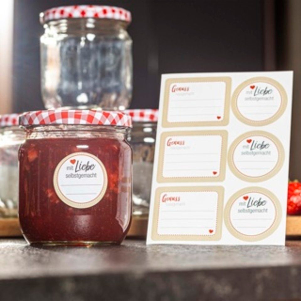 Sticker 30 tlg. Sticker Set "Einmachen" runde eckige Etiketten selbstklebend