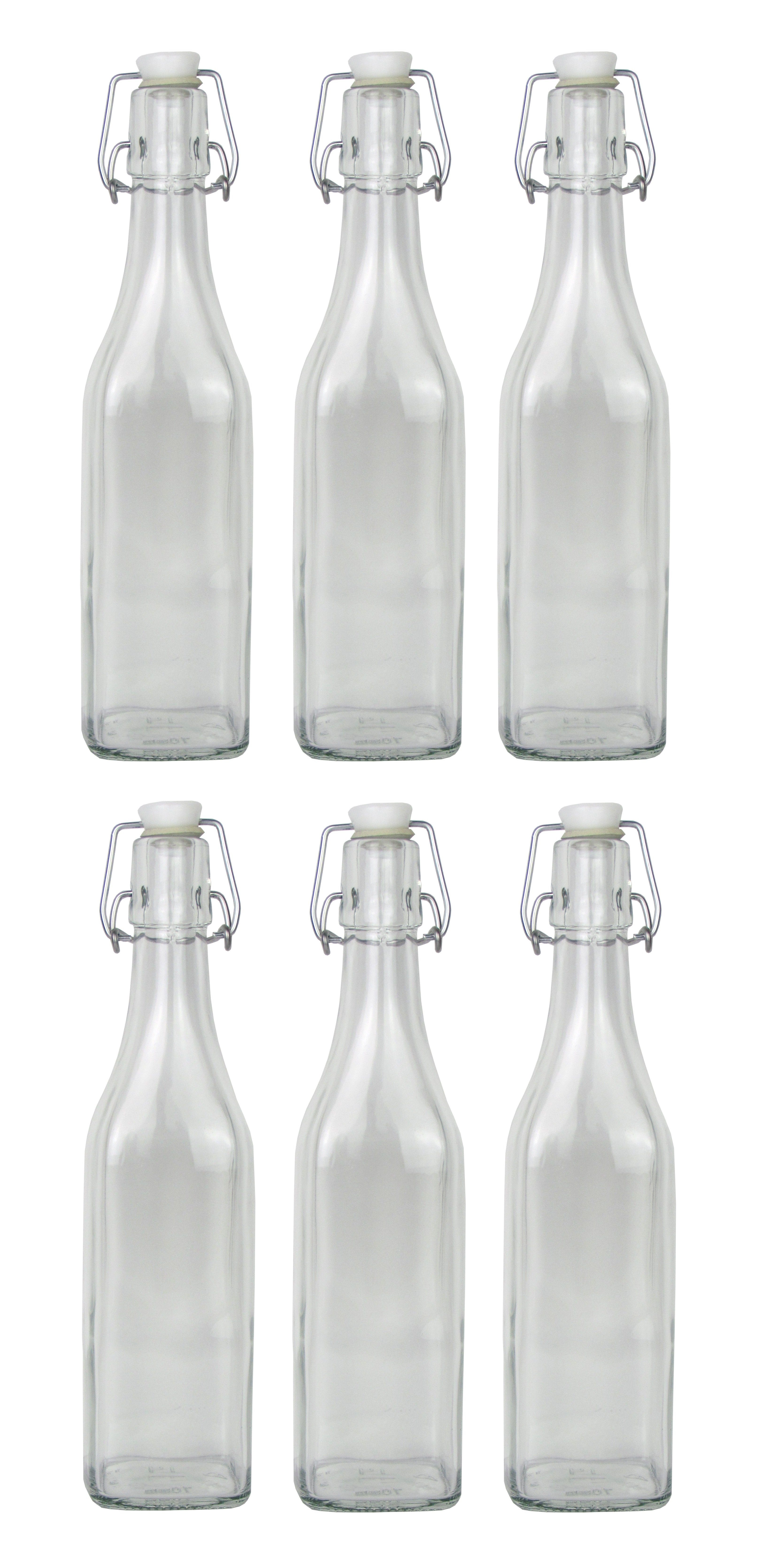 6 x vierkant Glasflasche á 500ml mit Bügelverschluss