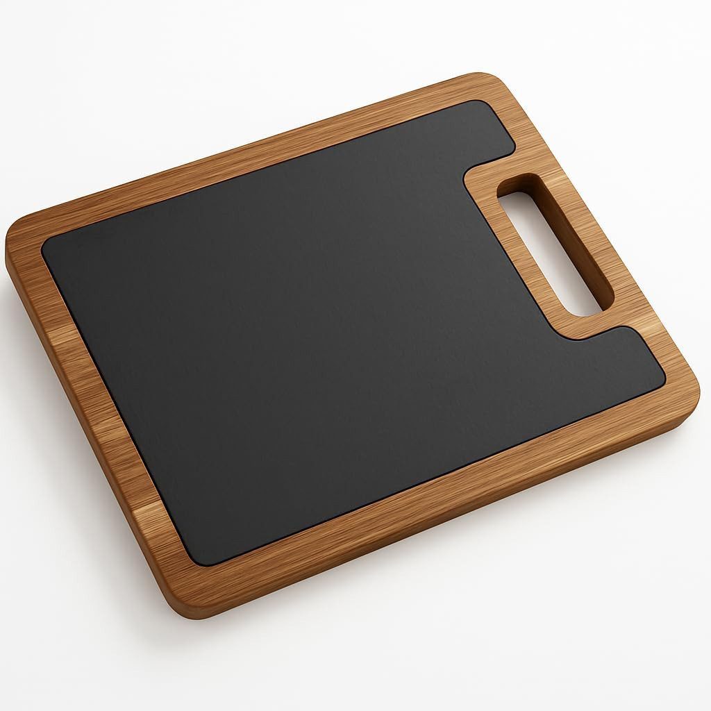 Edles Servierbrett mit Schiefereinsatz – für stilvolle Genussmomente. Dieses hochwertige Servierbrett vereint natürliche Materialien mit zeitlosem Design: Der robuste Akazienholzrahmen umrahmt eine elegante Schneide- und Servierfläche aus Schiefer, die fest im Brett integriert ist. Die kontrastreiche Kombination aus warmem Holz und dunkler Steinoptik verleiht dem Brett einen modernen, stilvollen Look – ideal zum stilvollen Anrichten von Käse, Tapas, Obst oder Brot. Die Schieferfläche ist hygienisch, kratzfest und lebensmittelecht – perfekt für den täglichen Gebrauch und dennoch ein echter Blickfang auf jeder Tafel. Ob als Frühstücksbrett, Vorspeisenplatte oder dekorative Käseplatte – dieses Servierbrett verbindet Funktionalität mit gehobenem Design. Der seitlich eingelassene Griff sorgt für eine einfache Handhabung und macht das Brett nicht nur praktisch, sondern auch elegant beim Servieren. Ein Must-have für alle, die mit Stil servieren möchten.
