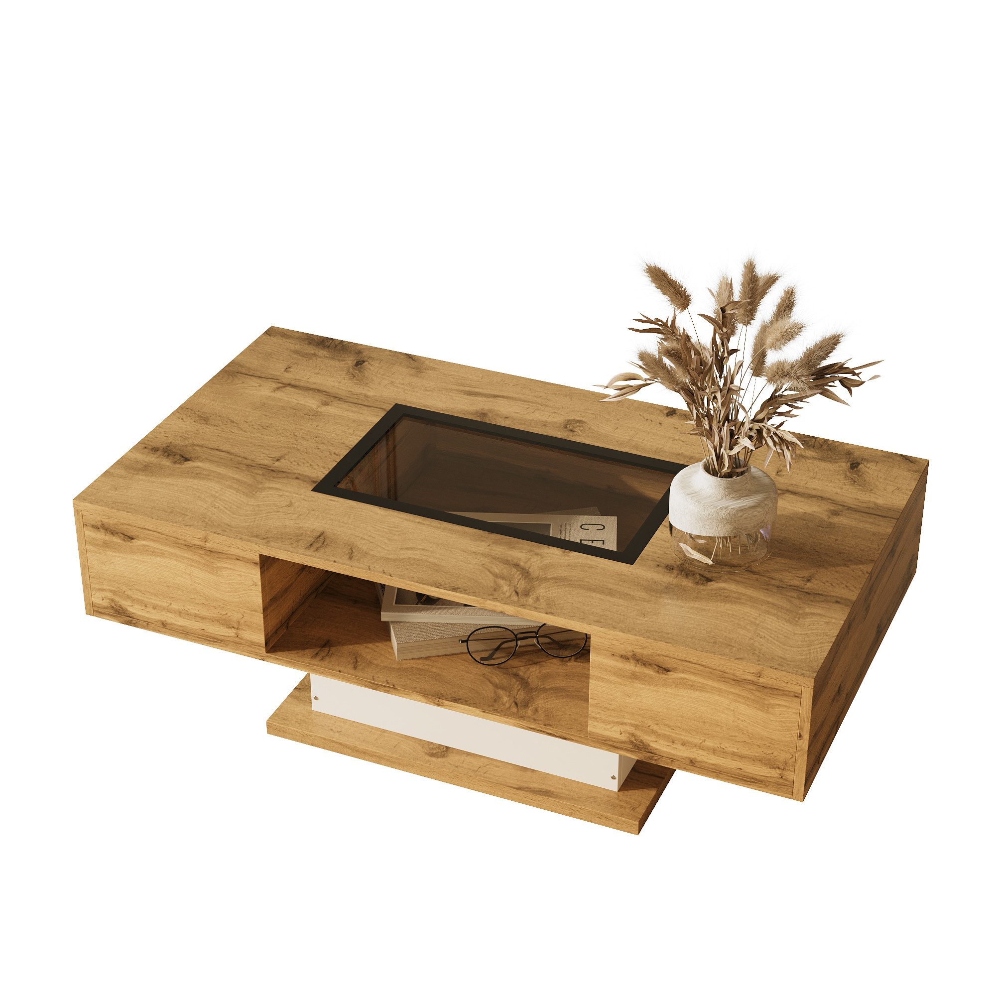 Für mehr Komfort ist der Couchtisch mit geräumigen Schubladen ausgestattet, in denen Sie persönliche Dinge, Fernbedienungen oder Ladegeräte ordentlich verstauen können. Die Schubladen lassen sich leicht öffnen und bieten eine praktische, unsichtbare Lösung zur Aufbewahrung.