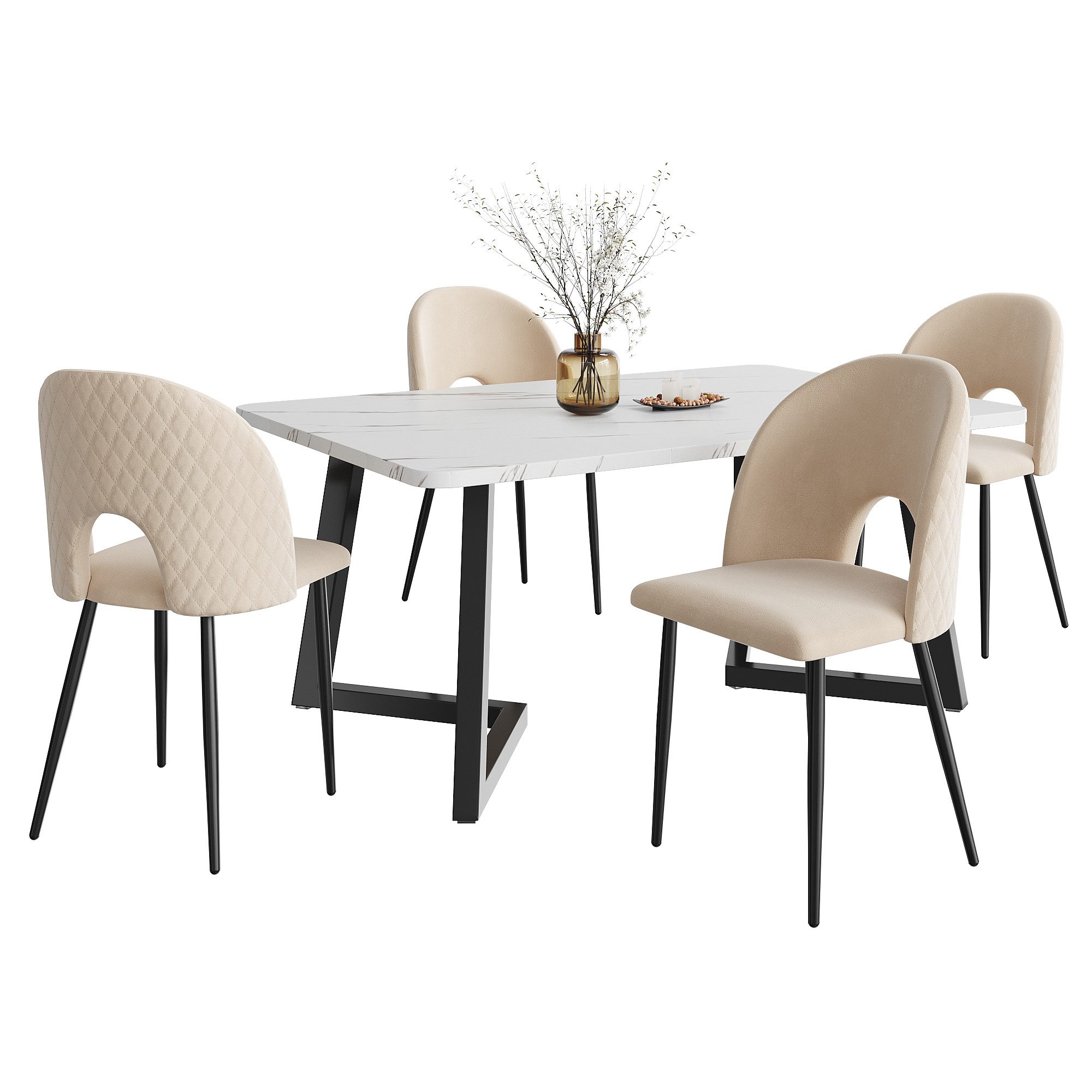 Farbe | Beige-Stühlen+Schwarz-Esstisch |