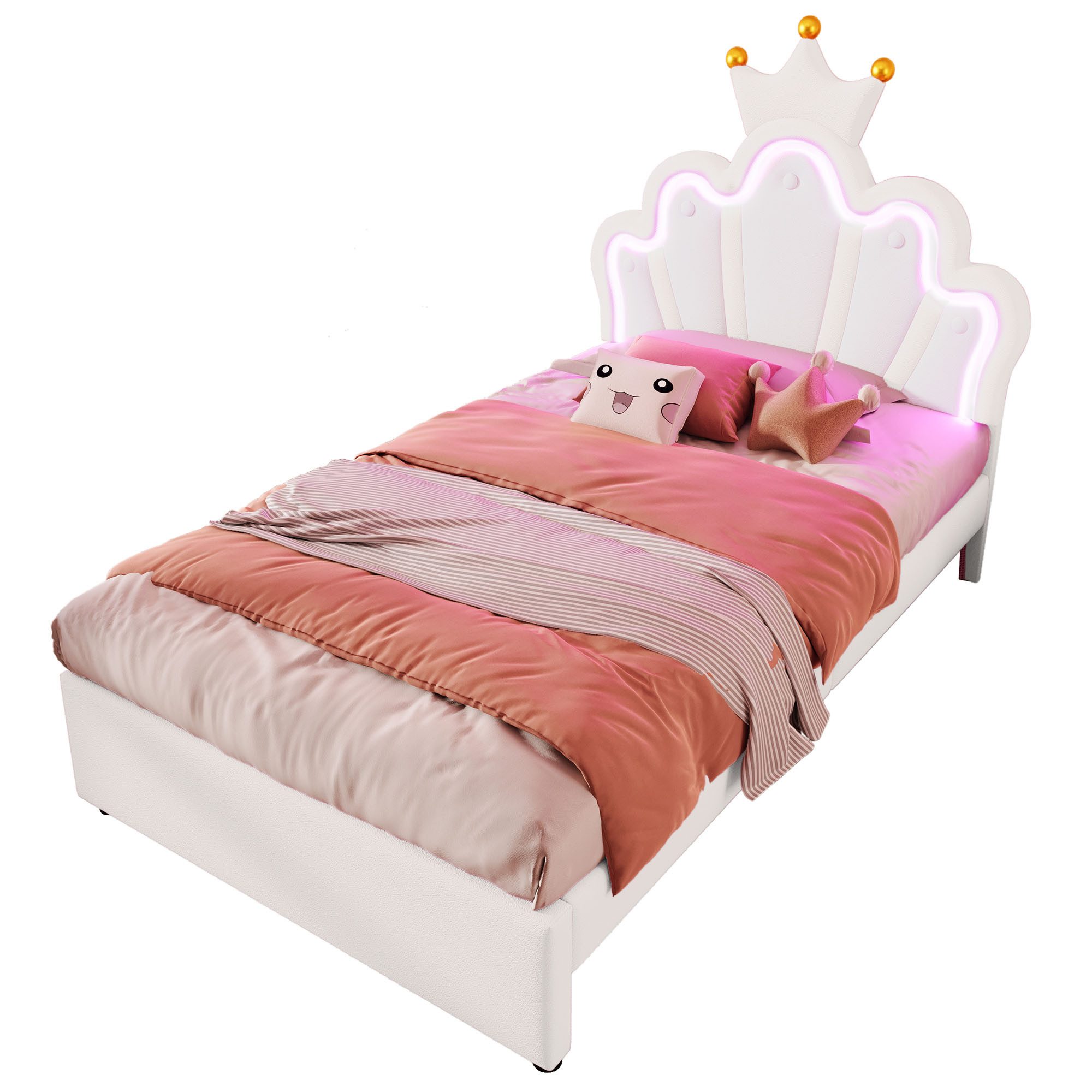 Das einzigartige Kronenelement-Design des Bettgestells zeigt einen außergewöhnlichen Geschmack und hebt sich durch seine luxuriöse Erscheinung hervor. Diese stilvolle Gestaltung lässt Ihr Schlafzimmer sofort zu einem harmonischen Zusammenspiel von Luxus und Komfort werden. Der elegante Kronenstil verleiht dem Raum eine edle Note und macht ihn zu einem wahren Blickfang.