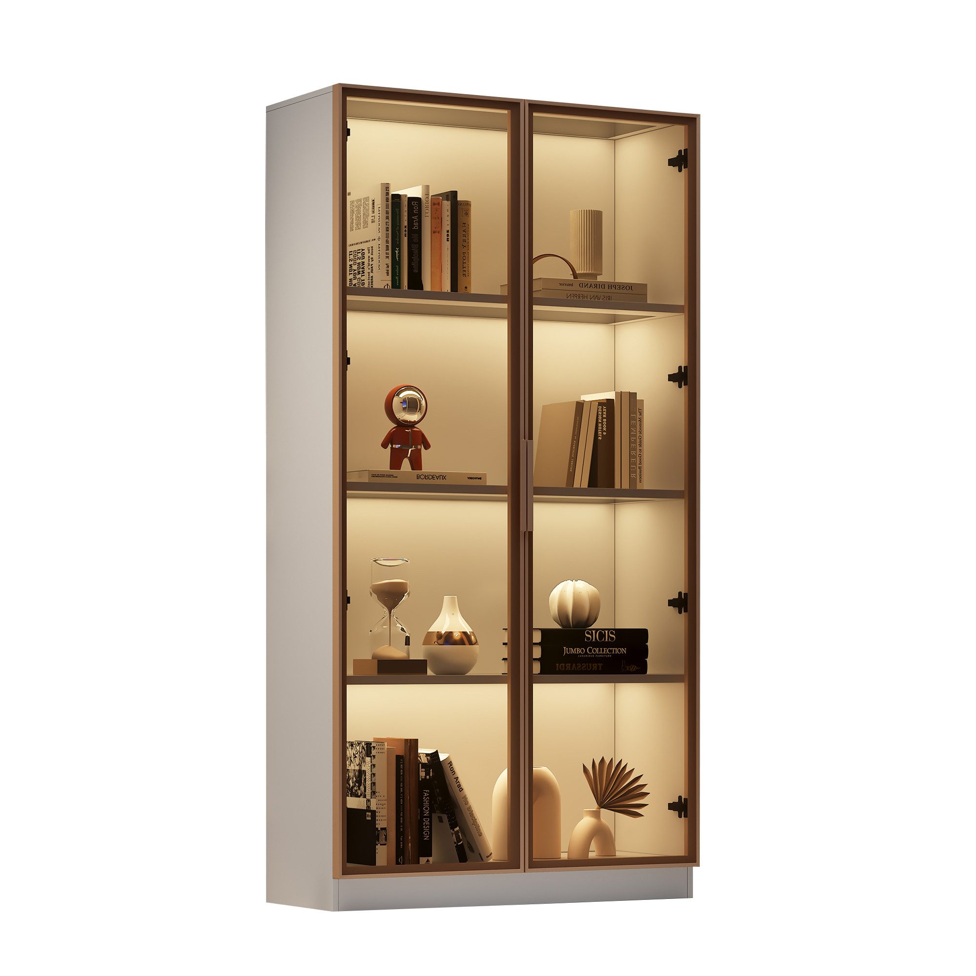 Der Glasvitrinenschrank mit den Maßen 80*40*160cm ist die perfekte Lösung, um Ihre Sammlerstücke, Ausstellungsobjekte oder Schätze stilvoll zu präsentieren. Mit seinem eleganten Design und der funktionalen Ausstattung ist dieser Schrank ein Blickfang in jedem Raum. Das weiße Holzgehäuse verleiht ihm ein modernes und zeitloses Aussehen, während die Türen und Seiten aus braunem Glas Eleganz und Raffinesse verleihen. Die integrierte 16-Farben-LED-Beleuchtung bringt Ihre Sammlerstücke zum Strahlen und schafft eine atmosphärische Beleuchtung. Im Inneren des Schranks befinden sich drei Regalebenen, von denen die mittlere fest montiert ist, während die oberen und unteren Ebenen individuell verstellbar sind. Dies ermöglicht es Ihnen, die Höhe der Regale an die Размер Ihrer Ausstellungsstücke anzupassen und den verfügbaren Platz optimal zu nutzen. Ob für Schmuck, Modellautos oder andere wertvolle Gegenstände – dieser Glasvitrinenschrank vereint Stil, Qualität und Funktionalität auf ideale Weise.