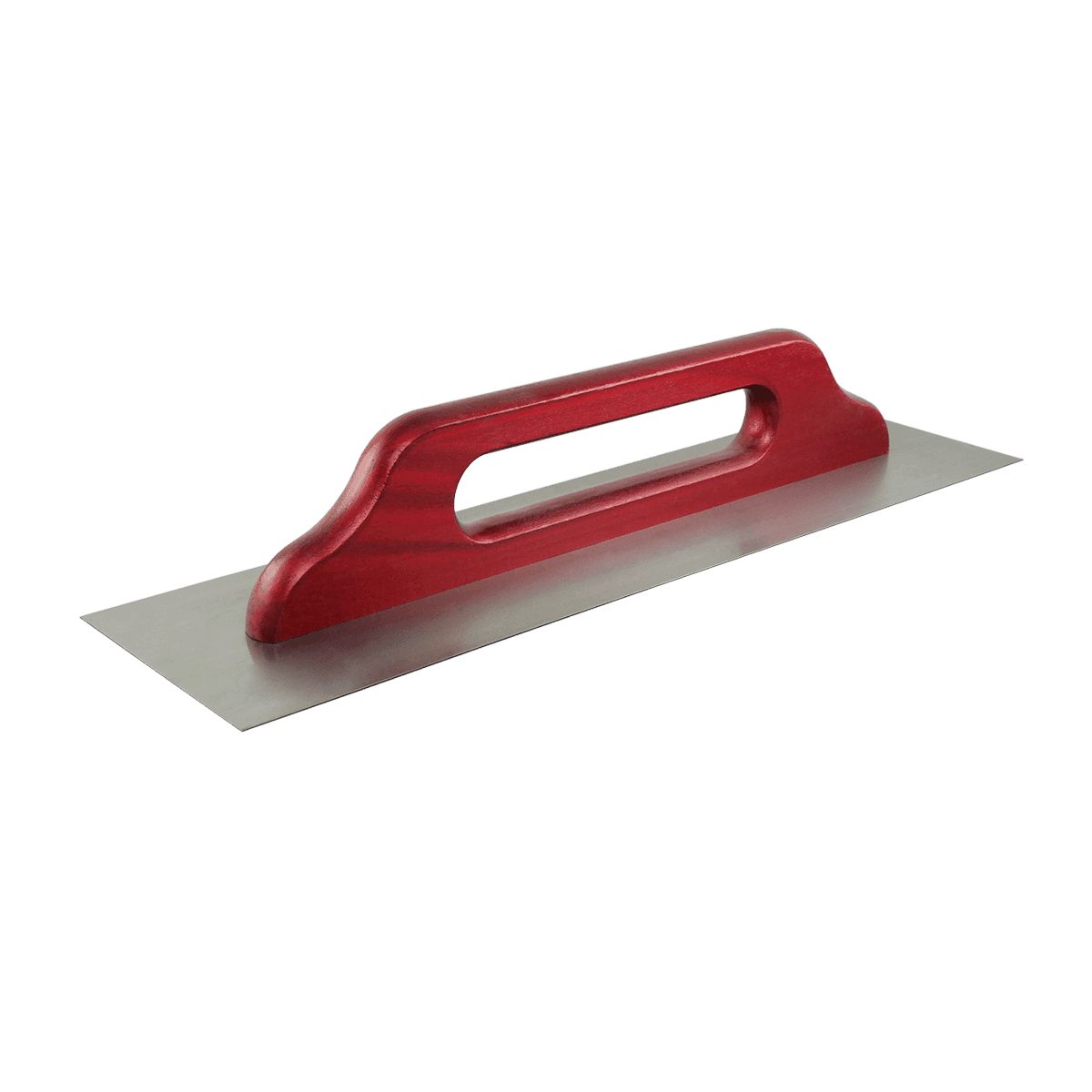 Glättekelle mit rotem Holzgriff und nietlos verschweißtem Blatt aus Spezialstahl oder rostfreiem Edelstahl