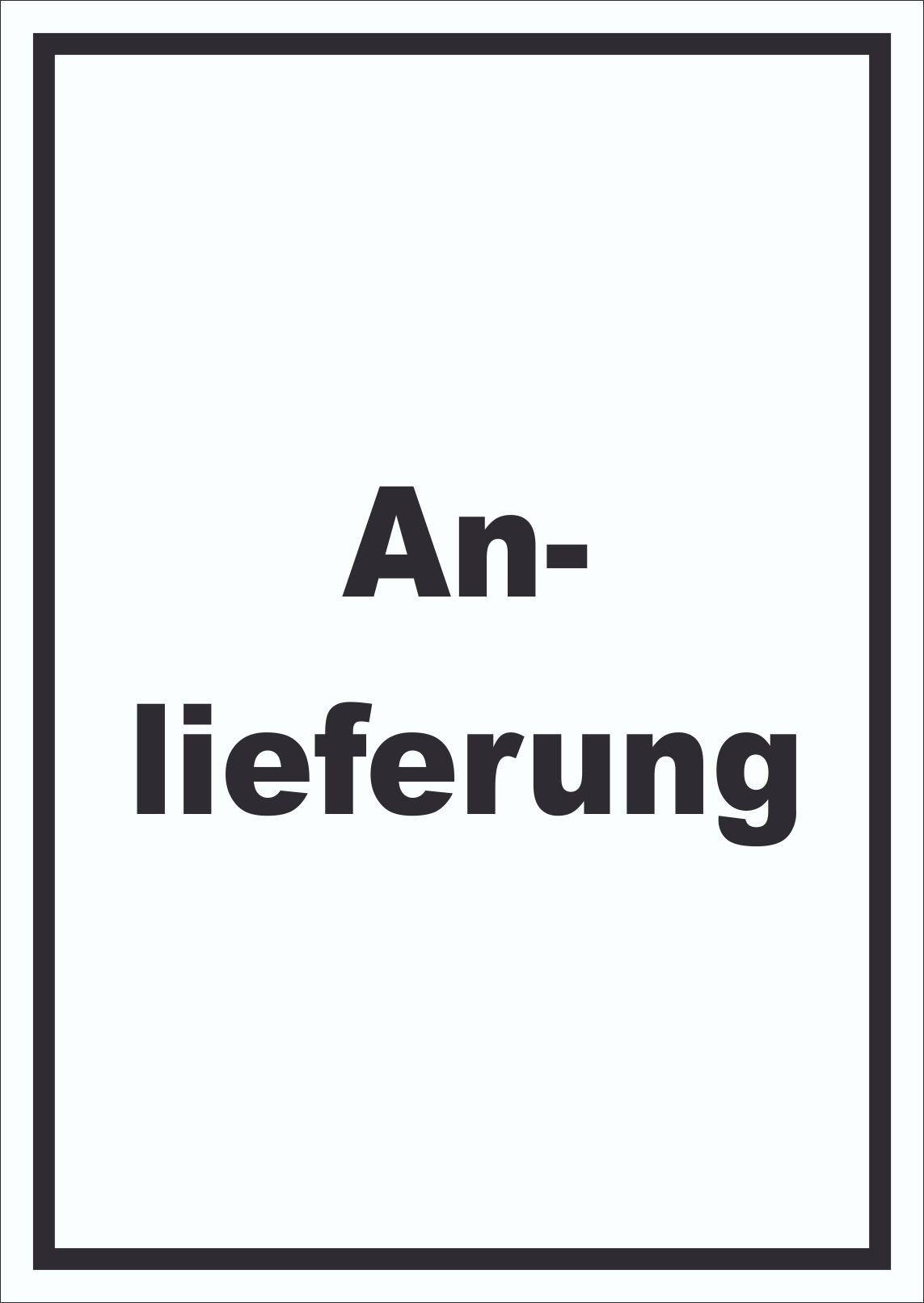 Hinweisschild Anlieferung Schild mit Text Annahme hochkant