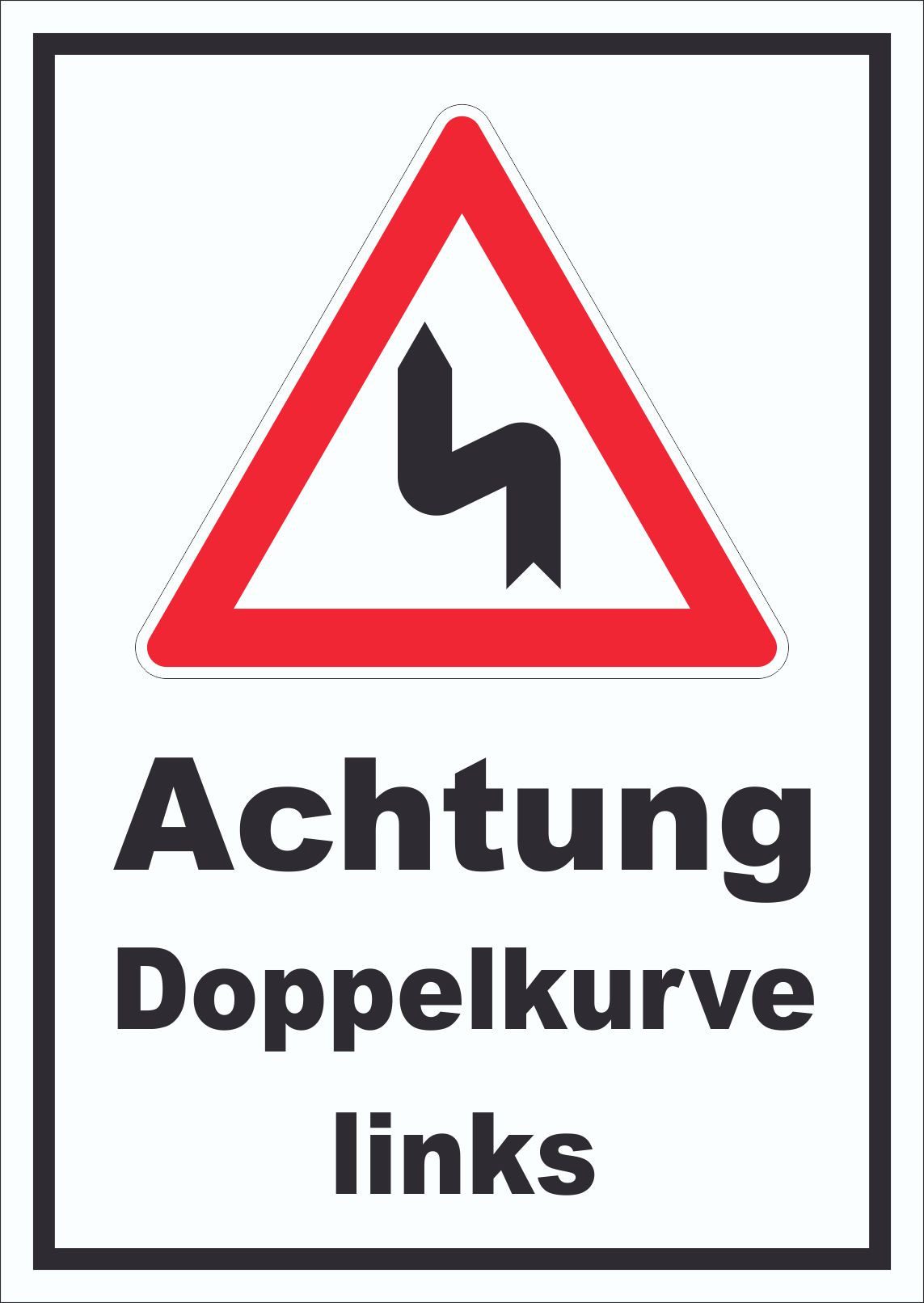 HB-Druck Hinweisschild Schild Achtung Doppelkurve links, wetterfest, stabil, UV-beständig, kratzfest